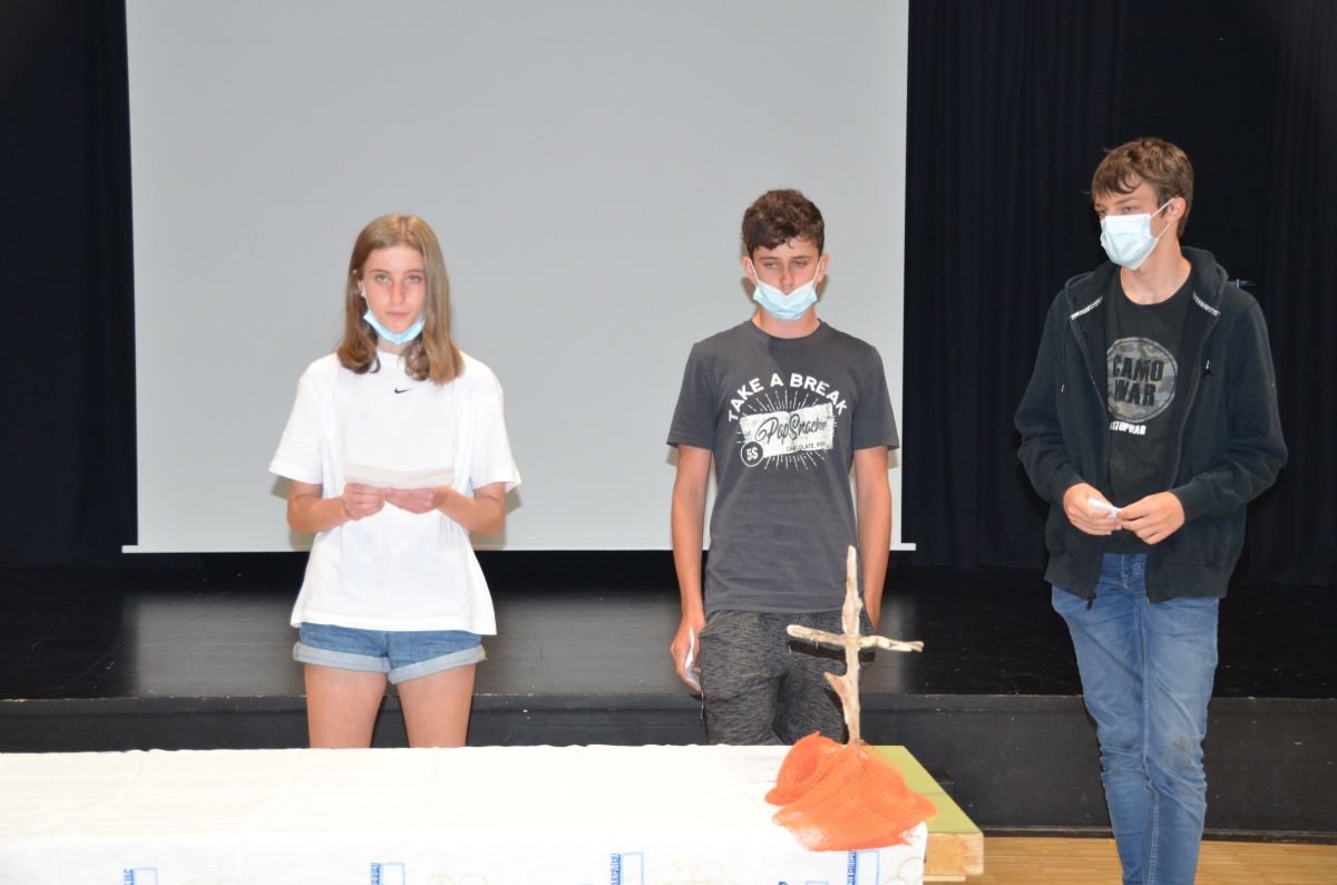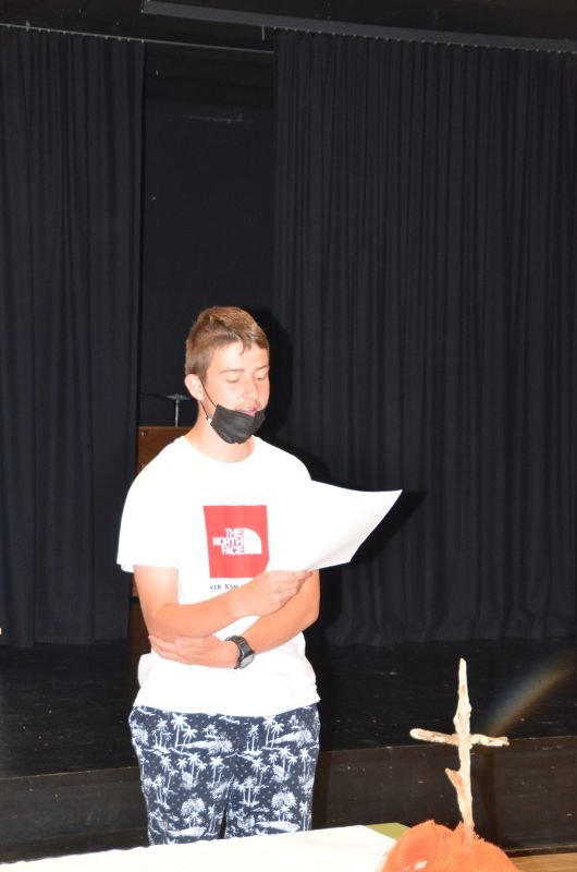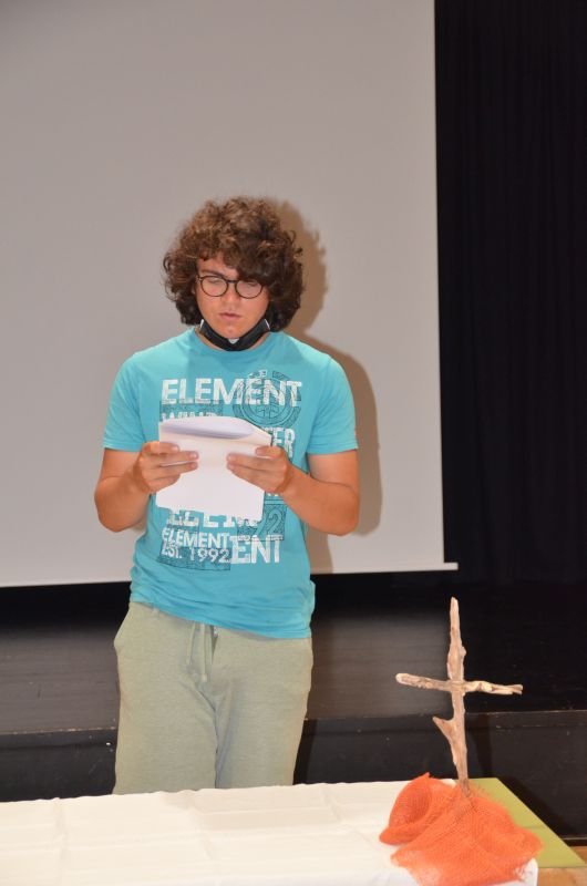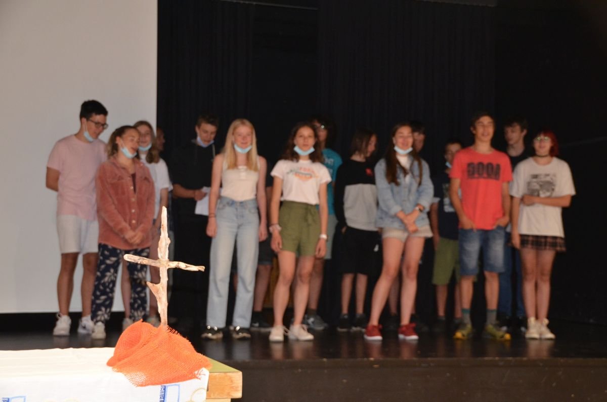 Bei der religiösen Feier im Theatersaal hatten die Jugendlichen die Gelegenheit, sich die schönen und erfreulichen Erinnerungen ins Gedachtnis zu rufen.