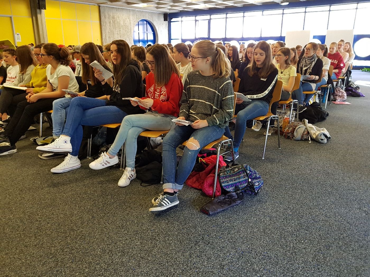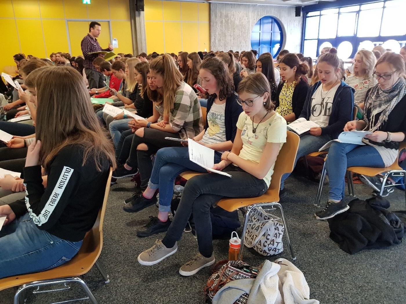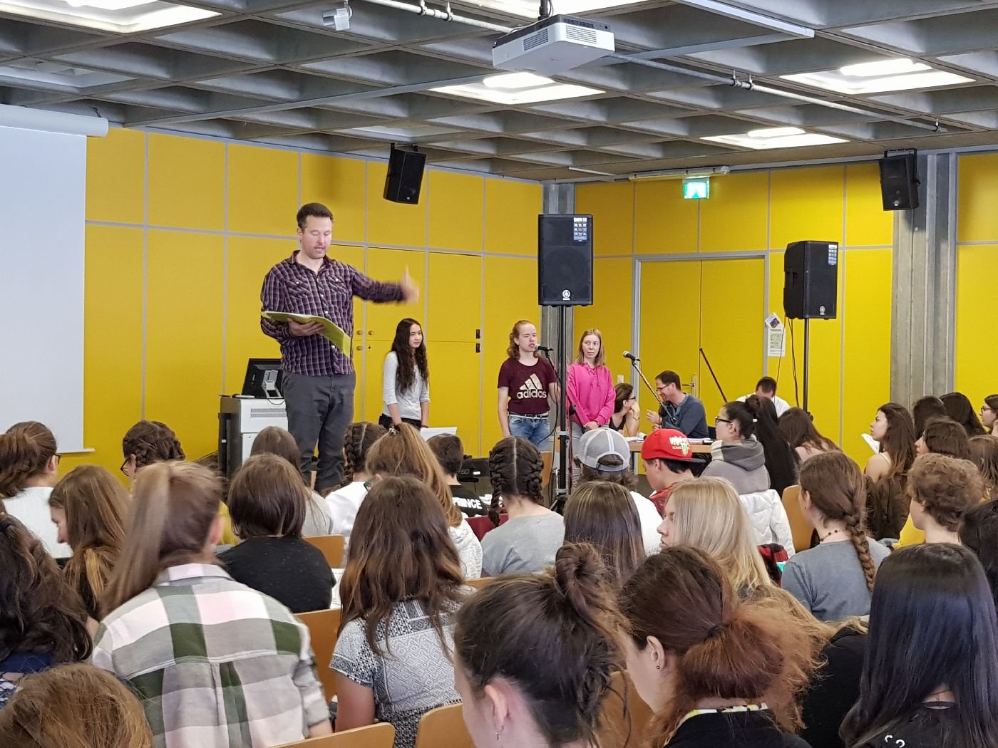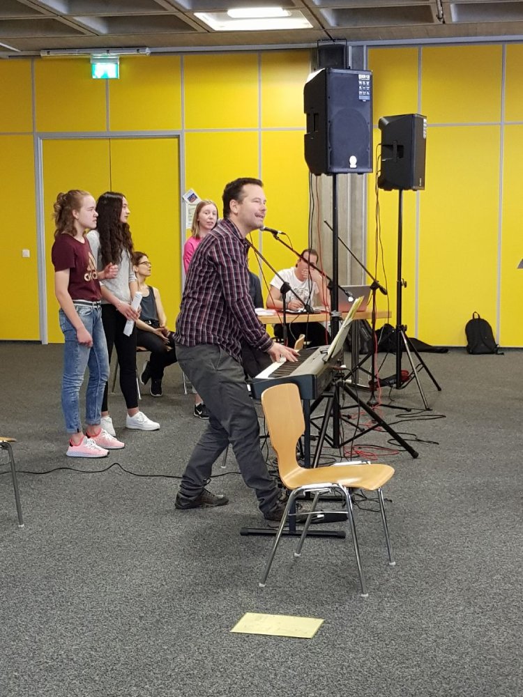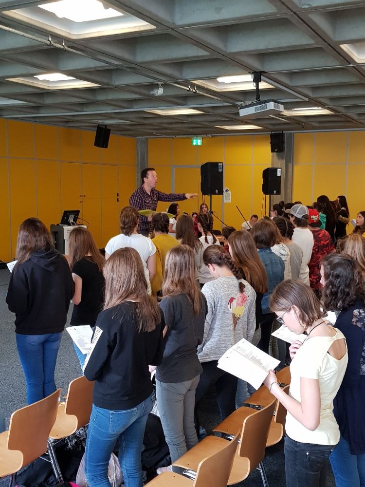 Gestern fand die zweite gemeinsame Probe mit ungefähr 120 Schülern und Schülerinnen statt. Mit 19 Sängern ist auch die OS Aletsch gut vertreten und organisiert zum Gesang auch noch die Ansagen. Mit vollem Einsatz und viel Spass bereiten sich unsere Lernenden auf die kommenden Konzerte vor.