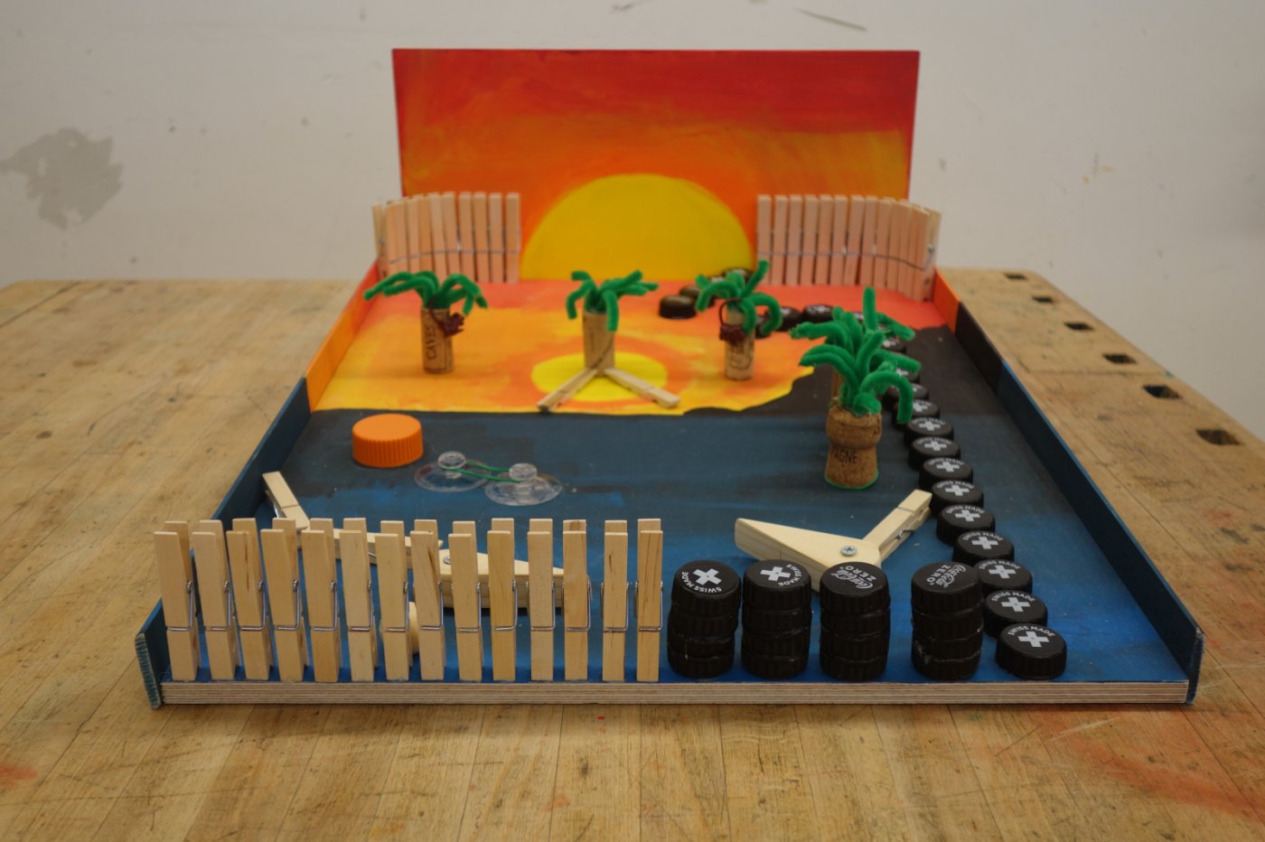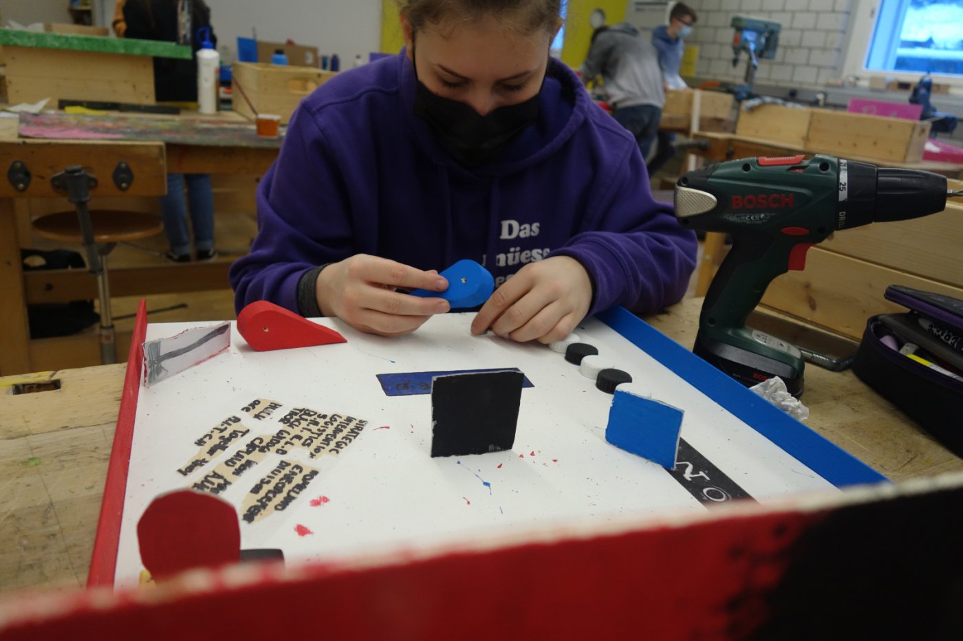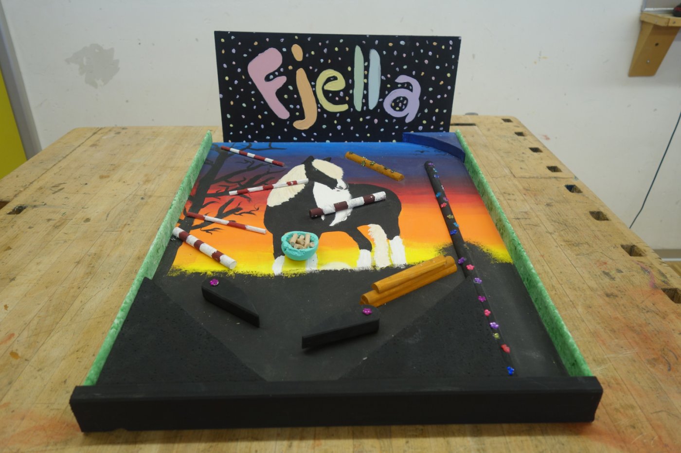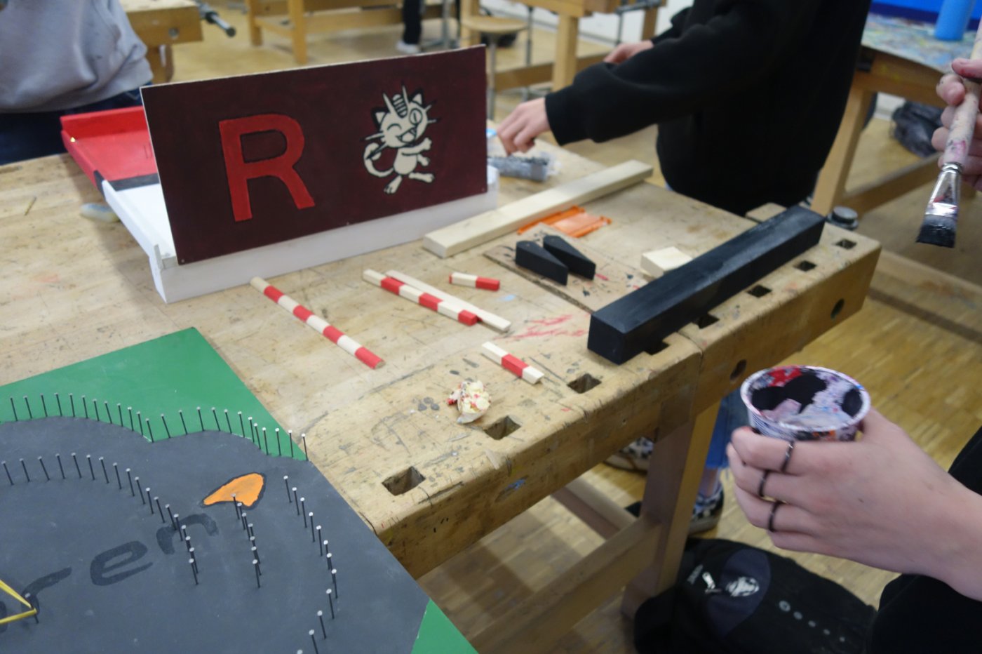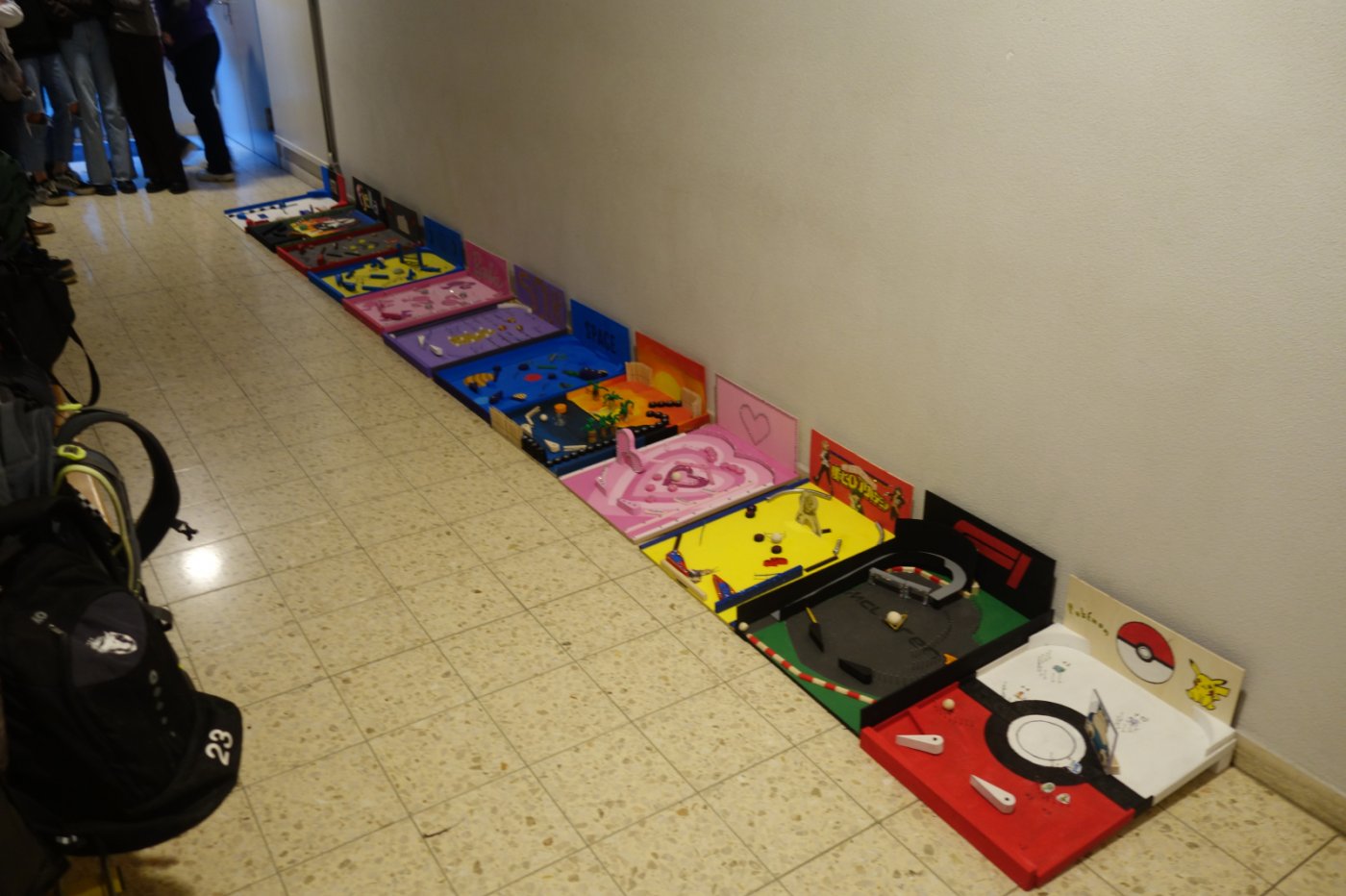Die 2. OS hat im ersten Semester Werken einen Flipperkasten erarbeitet. Am Anfang mussten wir uns ein Motiv ausdenken. Da gab es schon die ersten ausgefallenen Ideen: von Autos, Idolen, Tieren, Sport bis hin zu Barbie. Wir mussten dann viel Holz ausmessen und bearbeiten. Dabei gingen einige Sägen mitsamt unseren Hoffnungen kaputt. Nichtsdestotrotz haben wir durchgebissen und uns ins Projekt reingekniet - bis wir einen Ball herstellen sollten. Dies schien in der Theorie einfacher als es tatsächlich war, weshalb einige am nächsten Tag im "Giro" fertige Holzbälle kaufen gingen. Leider ist dieser Trick – wen wundert's - in der nächsten Lektion aufgeflogen. Als «Strafe» mussten wir nochmals einen neuen Ball herstellen, welcher auch bewertet wurde. Langsam nahmen die Flipperkästen Gestalt an. Einige wurden unfreiwillig mit Glitzersteinen übersäht. Wir liessen der Kreativität freien Lauf. Alles in allem war es ein sehr interessantes Projekt, welches allen viel Spass bereitet hat. Die Flipperkästen können sich sehen lassen und sind zum Glück auch funktionstüchtig!