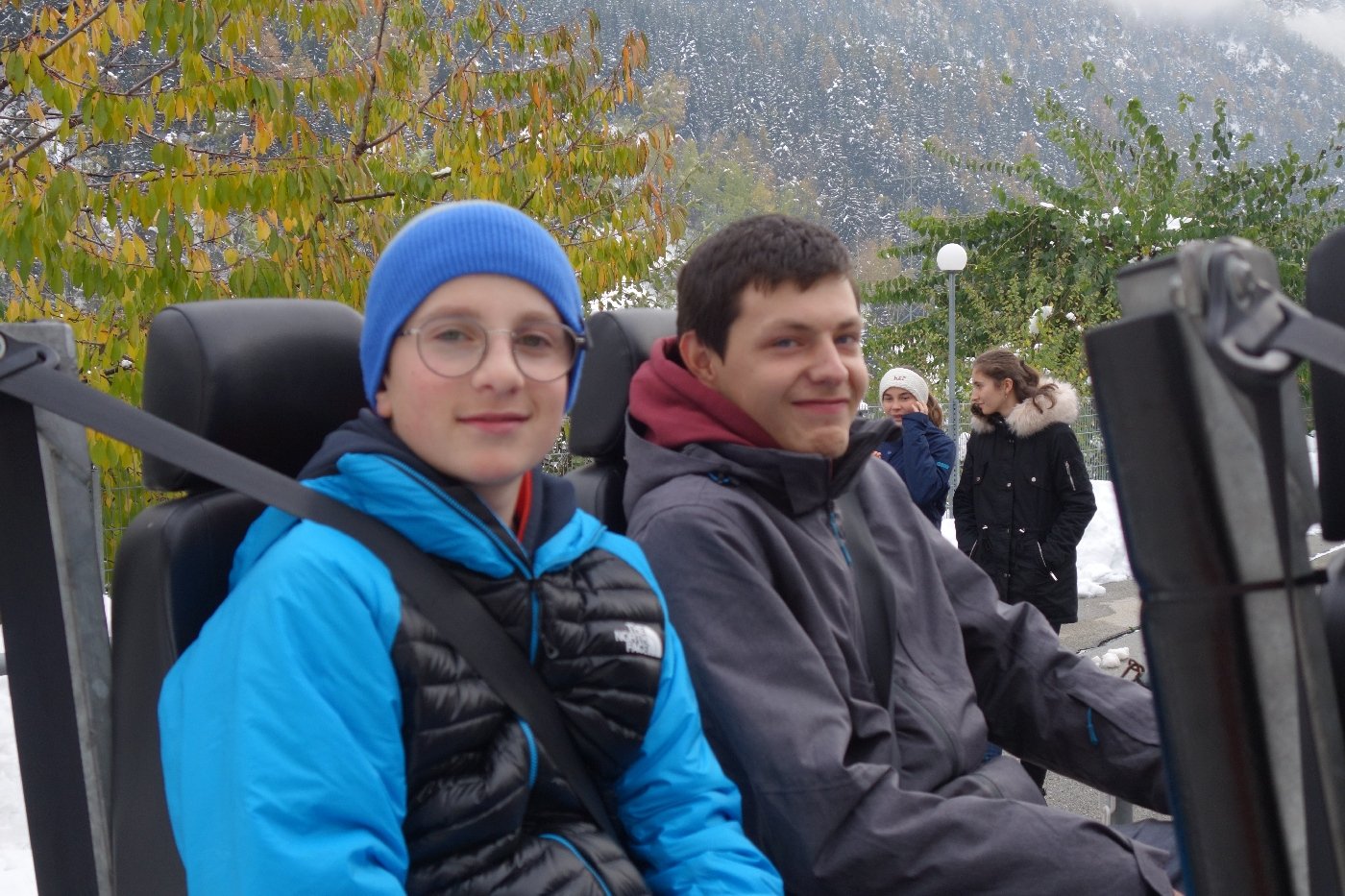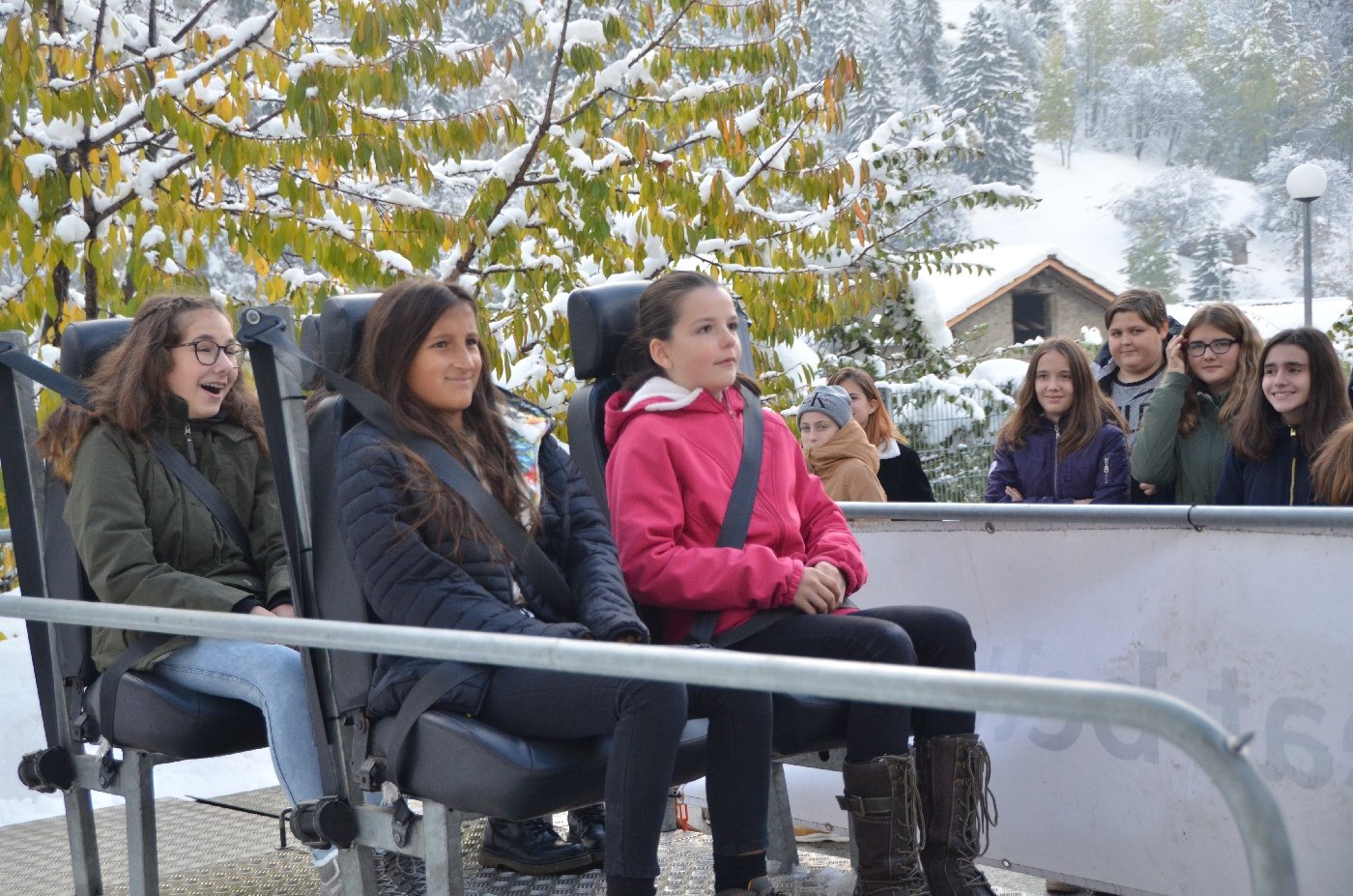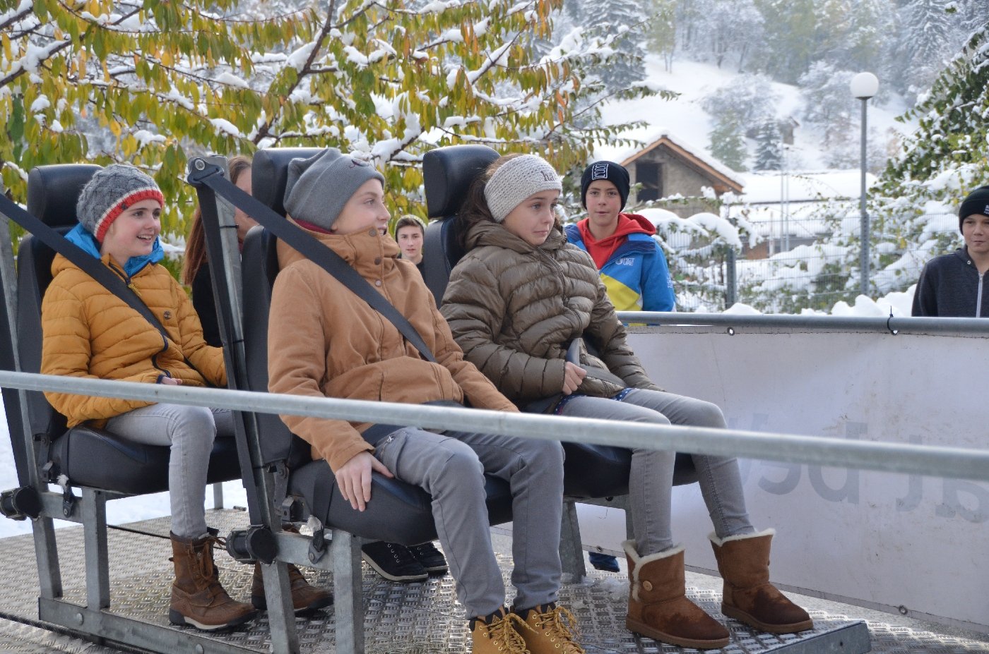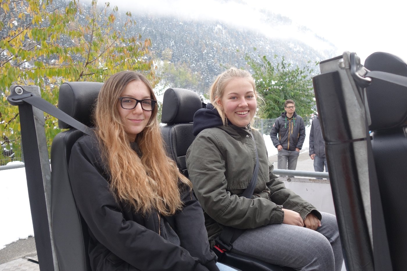 Die Gemeindepolizei Naters informierte die OS-Klassen anschaulich, dass ein kleiner "Klick" oftmals ein Leben retten kann und es fahrlässig ist, dies nicht zu tun. Die Funktion der Gurte konnten die Jugendlichen anschliessend am eigenen Leib erfahren, als auf einem Schlitten mit knapp 8 km/h eine Vollbremsung simuliert wurde.