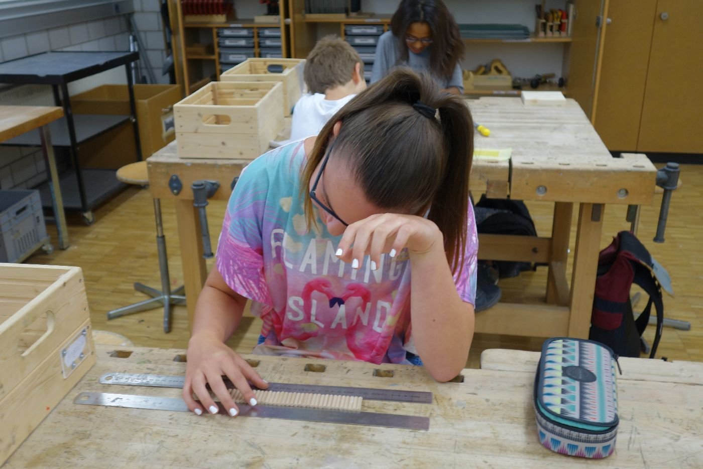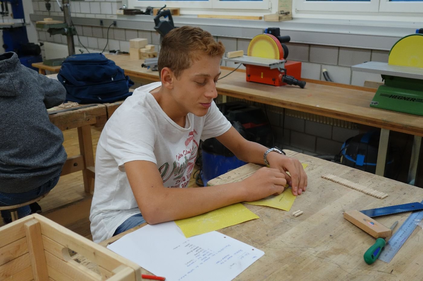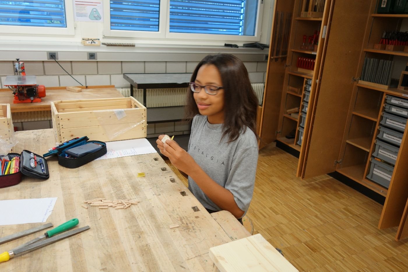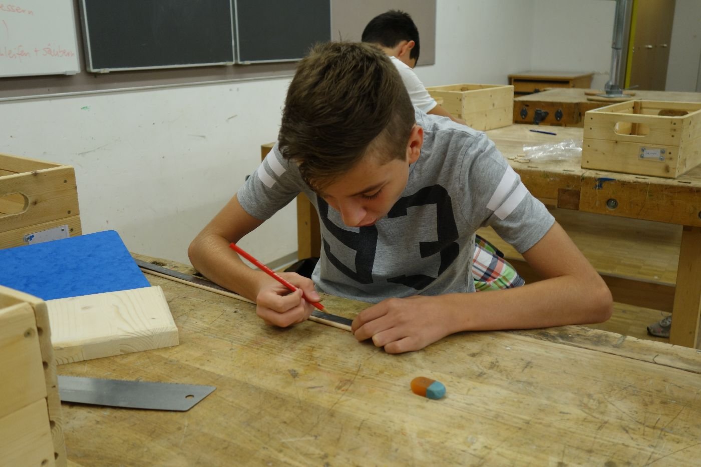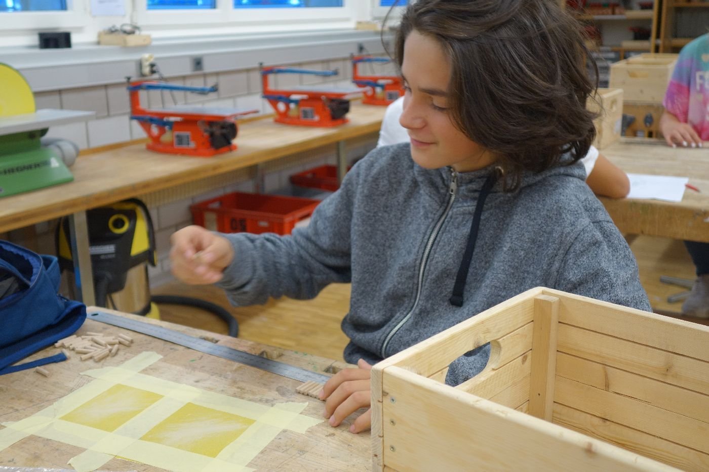 Im Fach Werken machte sich die 1. OS-Gruppe an ein Holzsteckspiel. Nachdem die Kids das Holzbrett vorbereitet hatten, wurde das Brett ausgemessen und schliesslich bohrten sie die Löcher für die Dübel, welche sie auch zugeschnitten und geschliffen hatten. Hier war zweifelsohne genaues Arbeiten gefragt und bei einigen auch eine grosse Portion Geduld...