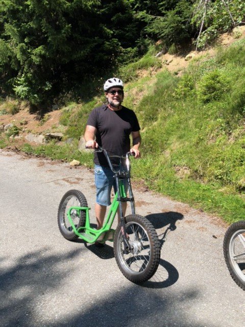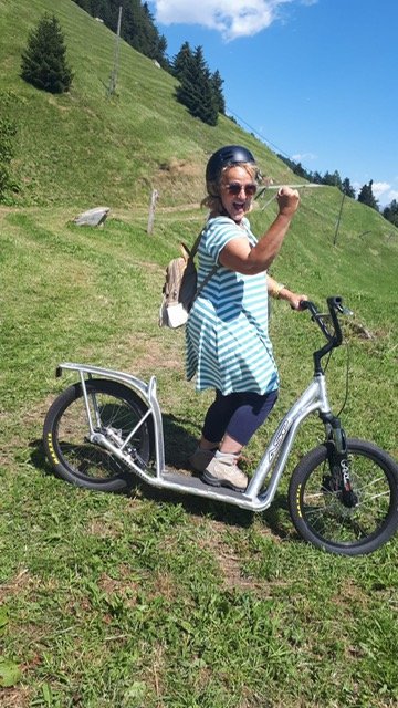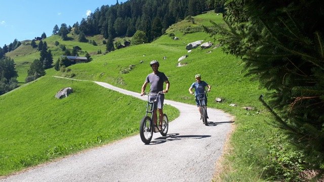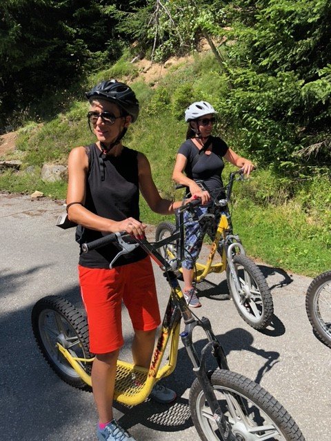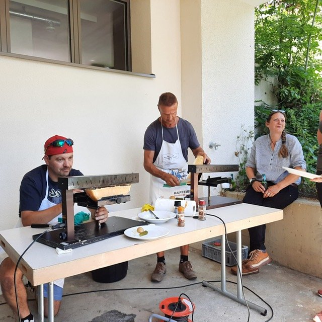 Das Schulleitungstrio offerierte zum Mittagessen ein Raclette-Plausch und so konnte man sich bei sommerlichen Temperaturen in Betten angeregt austauschen oder die Neulehrpersonen bei einem Schwatz besser kennenlernen. Natürlich durfte auch eine sportliche Betätigung nicht fehlen: nach der Bahnfahrt auf die Bettmeralp ging es in einer mehr oder weniger rasanten Fahrt mit den Trotti-Bikes wieder Richtung Tal. Als Alternative war eine leichte Wanderung auf die Riederalp im Angebot. Bei Kaffee & Kuchen fand die Veranstaltung einen gemütlichen Ausklang.