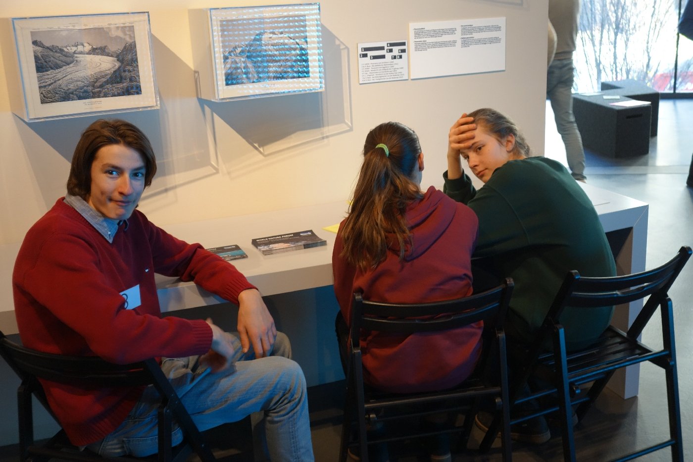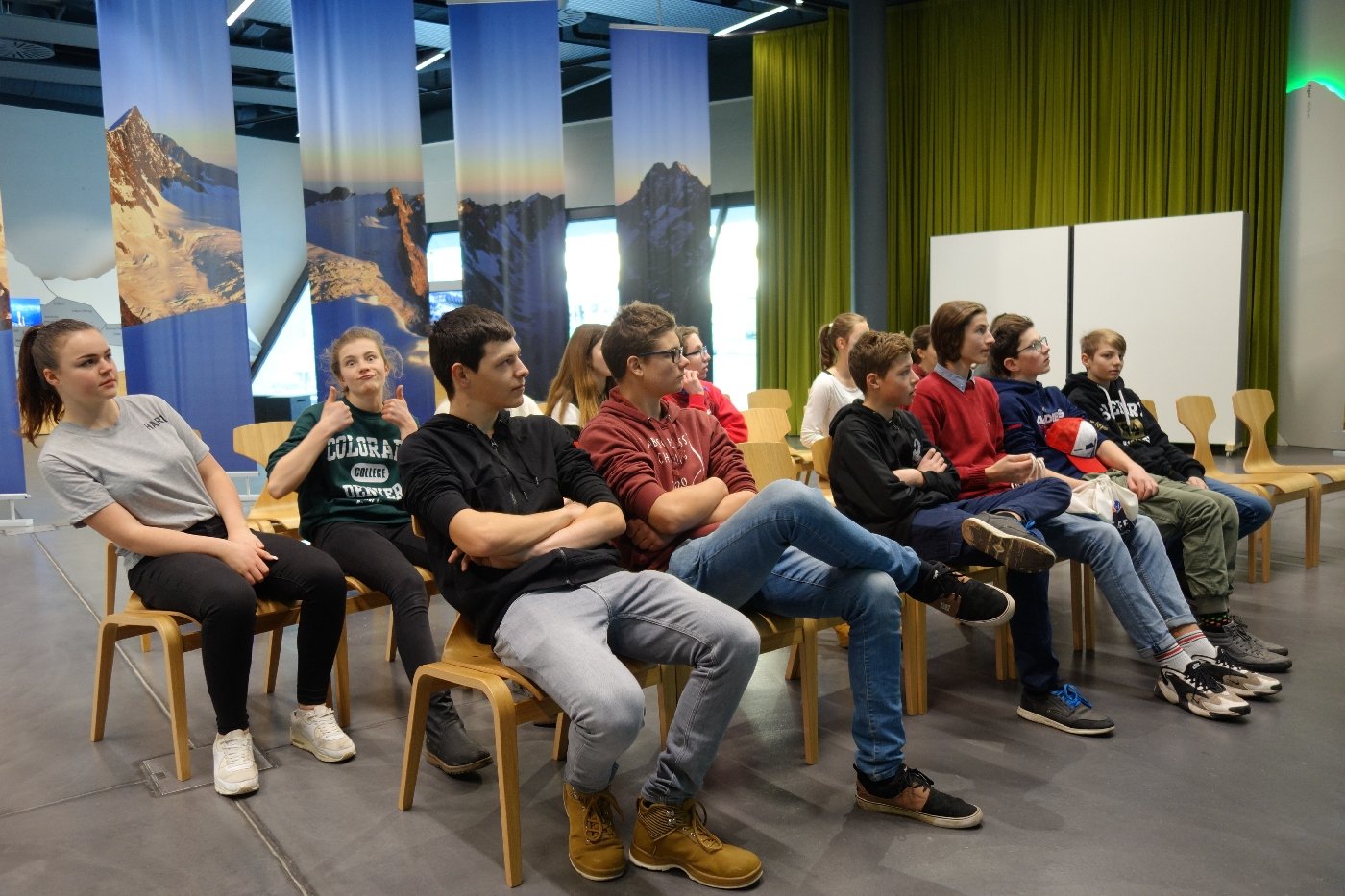 Ausgerüstet mit einer 3D-Brille begab sich die Expeditionsteilnehmenden der 3. OS 1 auf die Expedition 2 Grad: In einer virtuellen Welt rund um den Grossen Aletschgletscher erlebten sie die Auswirkungen der Temperaturzunahme in der alpinen Umgebung auf interaktive und emotionale Art und Weise. Dabei reisten sie durch Zeit und Raum und sahen auf eindrückliche Weise die Aletschregion durch die Augen ihrer Grosseltern und der zukünftigen Generationen, was doch einige SuS ziemlich nachdenklich stimmte.