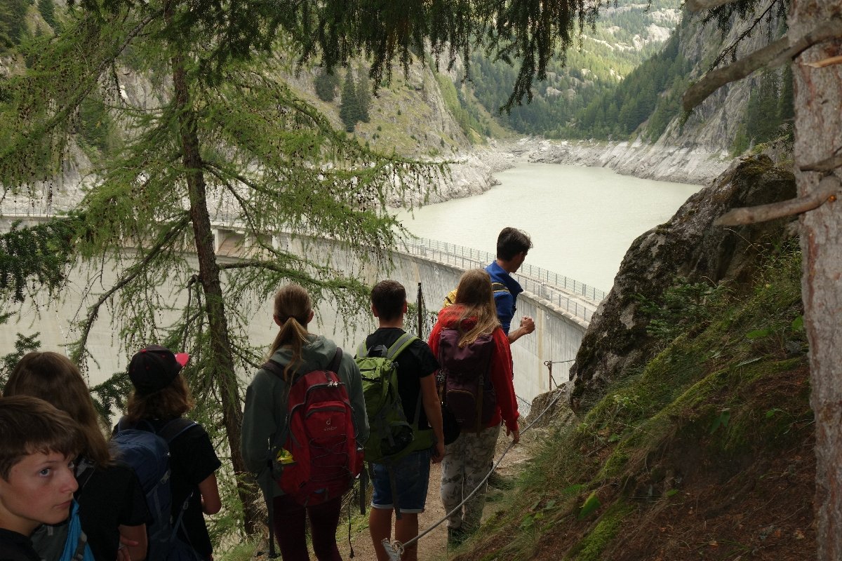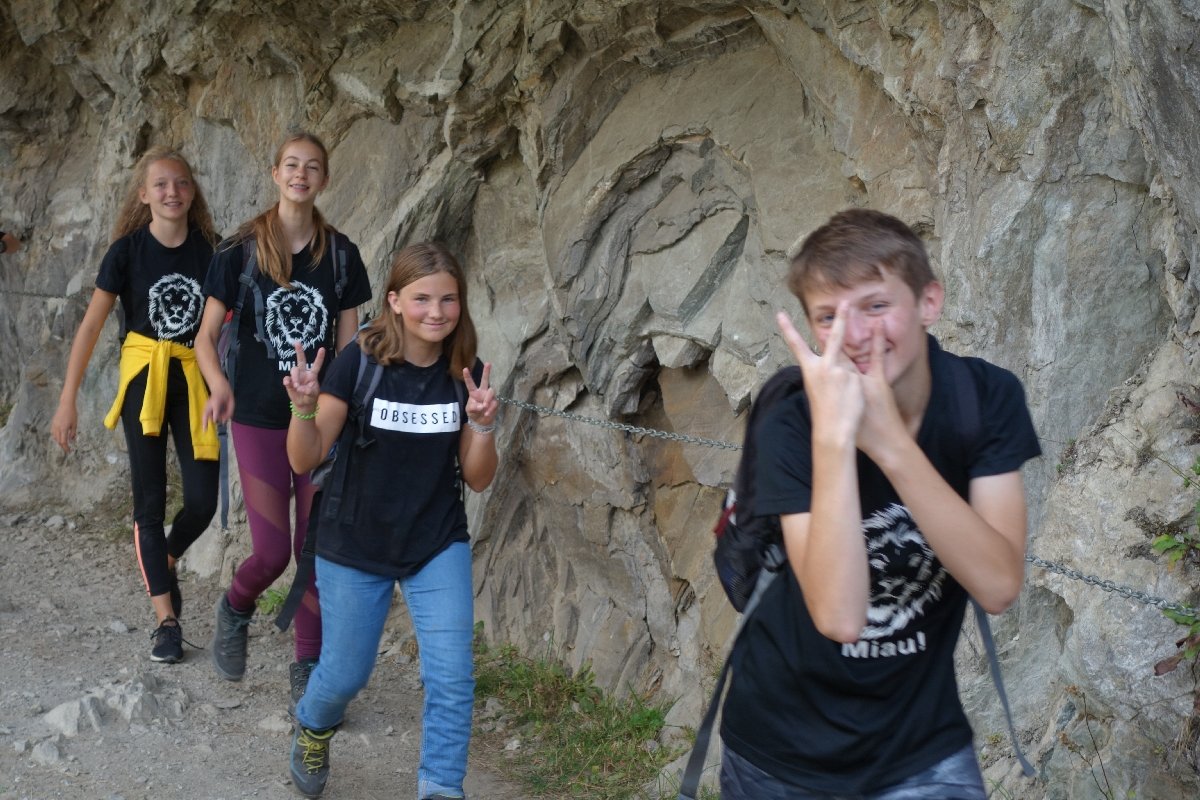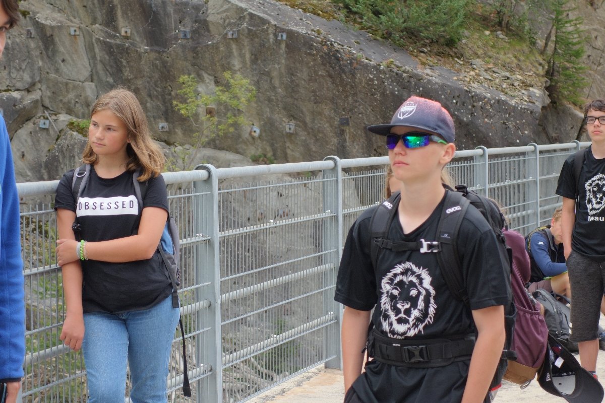 Heute war ein Tag voller Liebe, Wasser, Geschichten und Motivation. Es wurden Firmen gegründet und grosse Lieben entdeckt. Spass beiseite! :-) Morgens um 08.30 Uhr starteten wir voller Motivation bei der Villa. Nach dem steilen Abstieg sahen wir die ersten Murmeltiere. Später liefen wir entlang des Massawegs und gingen auch hinunter in die Schlucht. Unten angekommen verpflegten wir uns und zur Abkühlung sprangen manche in die eiskalte Massa. Danach liefen wir nach Ried-Mörel und fuhren mir der Gondel hoch. Die Motivation schwand jedoch zusehends, da wir noch bis zur Villa Cassel laufen mussten. Somit ging ein sehr lehrreicher und spannender Tag zu Ende. Nun freuen wir uns auf das Abendessen und die Disco, welche das Motto "Elegant" trägt!