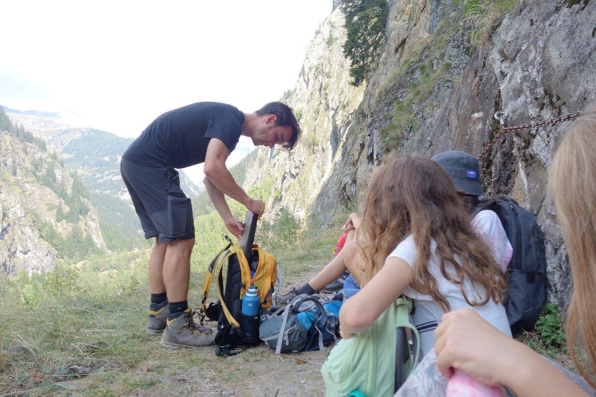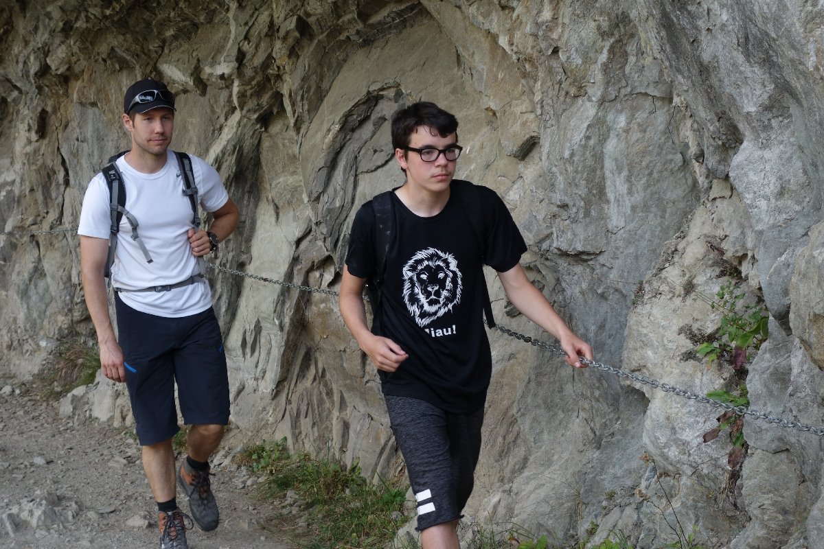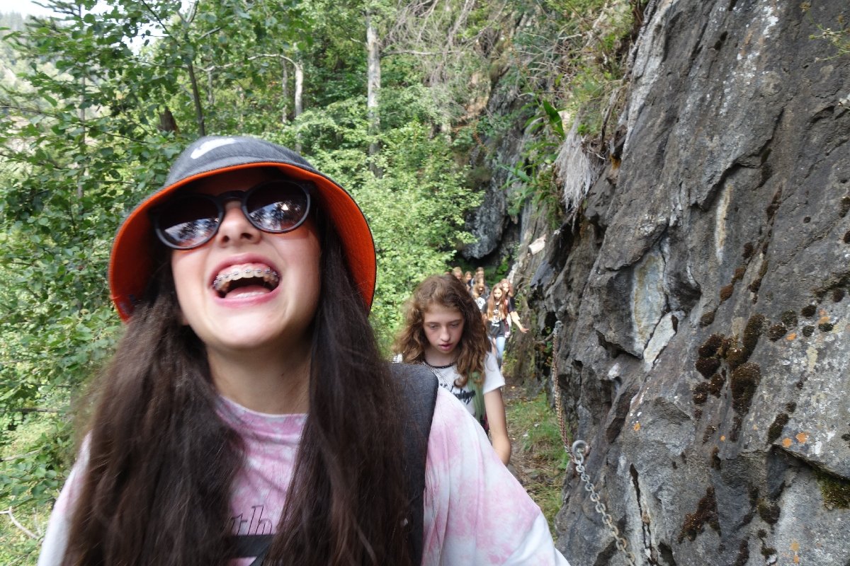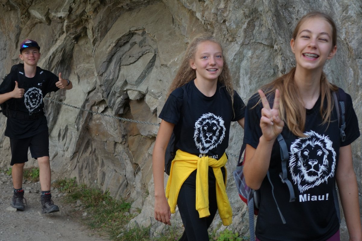 Heute war ein Tag voller Liebe, Wasser, Geschichten und Motivation. Es wurden Firmen gegründet und grosse Lieben entdeckt. Spass beiseite! :-) Morgens um 08.30 Uhr starteten wir voller Motivation bei der Villa. Nach dem steilen Abstieg sahen wir die ersten Murmeltiere. Später liefen wir entlang des Massawegs und gingen auch hinunter in die Schlucht. Unten angekommen verpflegten wir uns und zur Abkühlung sprangen manche in die eiskalte Massa. Danach liefen wir nach Ried-Mörel und fuhren mir der Gondel hoch. Die Motivation schwand jedoch zusehends, da wir noch bis zur Villa Cassel laufen mussten. Somit ging ein sehr lehrreicher und spannender Tag zu Ende. Nun freuen wir uns auf das Abendessen und die Disco, welche das Motto "Elegant" trägt!