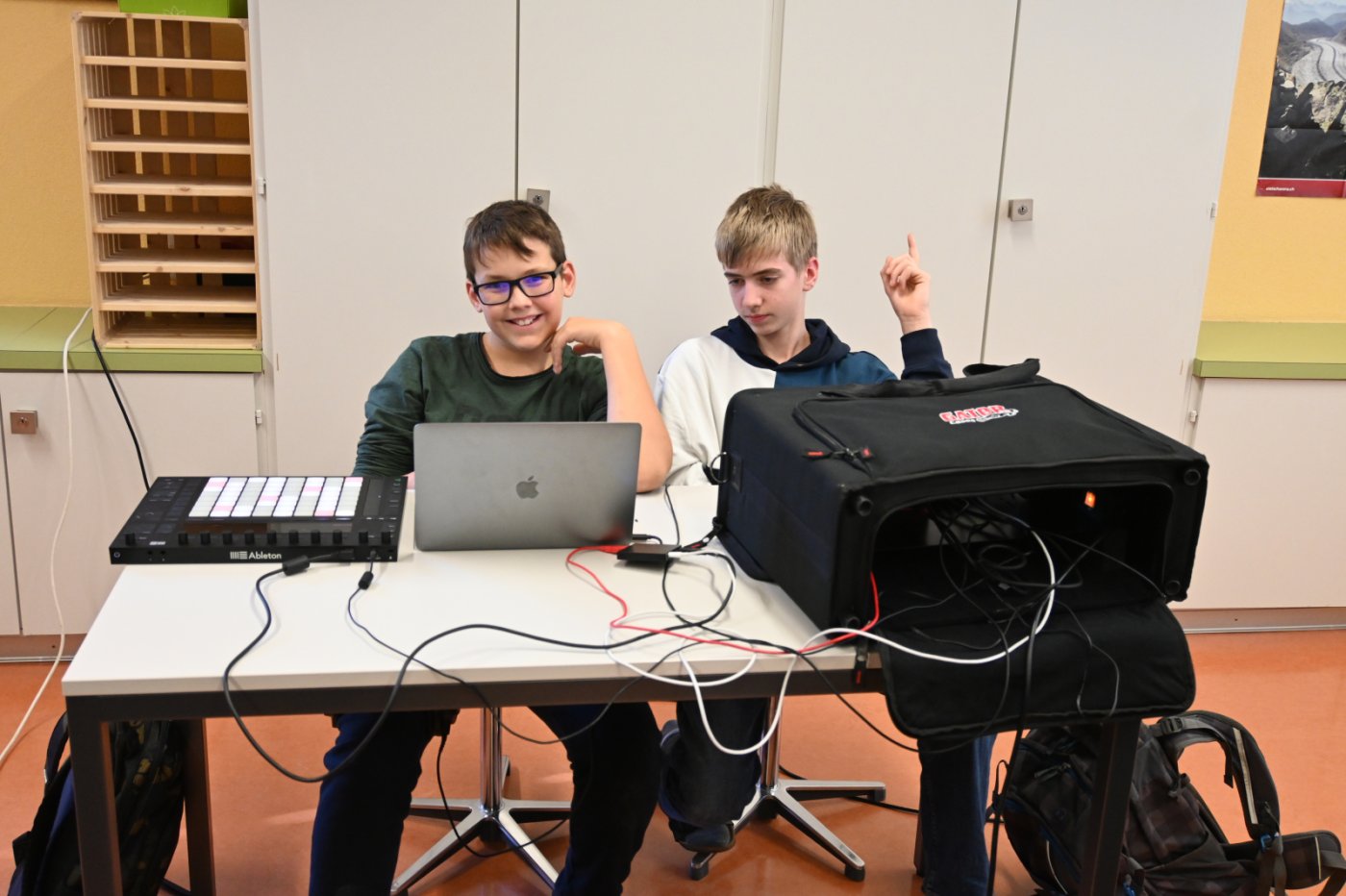 Nach einer Phase der Ideenfindung zu Beginn des Schuljahres, ging es heute mit der Arbeit am Schulhaus-Song so richtig los. Bregy Stefan vom fahrenden Tonstudio brachte ein beachtliches Equipment in die Schule und so konnten die 10 & 11OS-Klassen bereits einen Beat (Intro, Rap-Teil, Refrain etc.) entwerfen und ihre Wünsche zum Genre einbringen. Auch das Radio Rottu war zu Besuch und verfolgte die Schüler:innen bei ihrer Produktion. Fotos, Interviews und ein Bericht werden sich am Freitag auf rro finden. Den Link finden Sie in den nächsten Tagen auf diesem Kanal.
