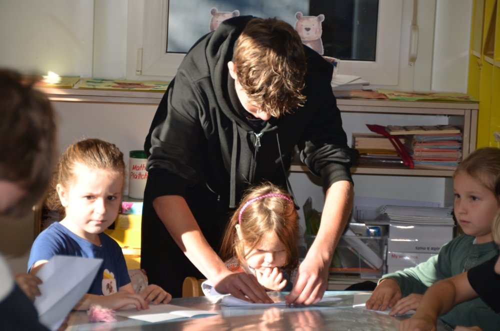 Die 11OS der OS Aletsch war mit 5 verschiedenen Ateliers bei der Primarschule Bitsch zu Besuch. Die OS-Schüler organisierten und leiteten die Ateliers, die Kindergärtner und Primarschüler konnten teilnehmen und von den folgenden Angeboten profitieren: