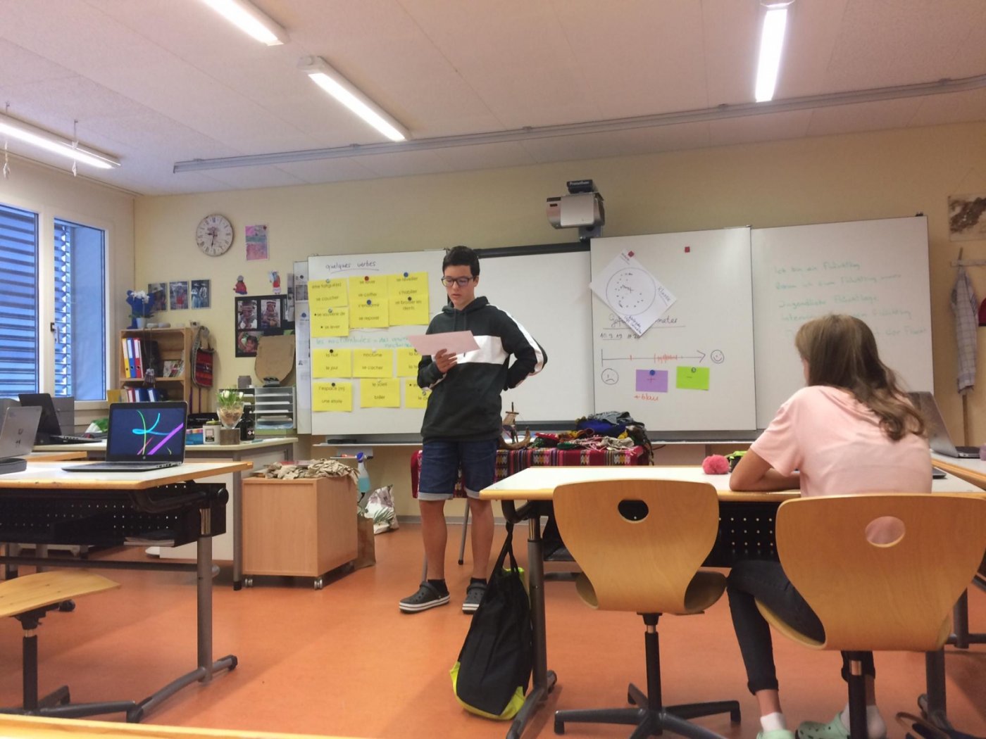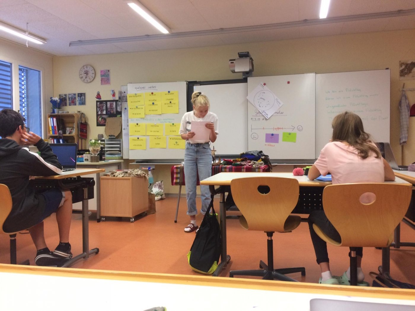Am Mittwoch hiess es laut Programm Vorurteile abbauen. Herr Salzmann half uns dabei sehr. Danach ermöglichte uns Frau Ritz einen Kontakt mit einem Flüchtlingsmädchen, welches im vergangenen Juni voller Stolz ihren Schulabschluss an der Schule Mörel erhielt. Wir freuten uns auf ein Wiedersehen mit Masome. Sie erzählte uns von ihren Erlebnissen auf der Flucht, ein Leben geprägt von Angst. Sie konnte unsere Fragen klären. Währenddessen suchte die andere Hälfte der Klasse nach ähnlichen Flüchtlingsfällen im Internet. Nach der Pause gab es einen Gruppenwechsel. In der letzten Stunde erfuhren wir, dass im 19. Jahrhundert tausende Einwohner der Schweiz ausgewandert sind, weil es hier zu wenig Land für die Nachkommen hatte. Es war spannend.