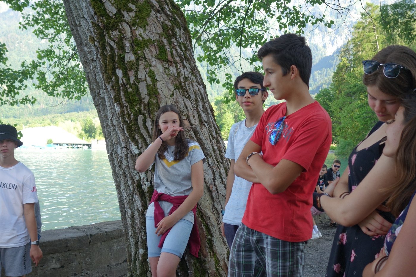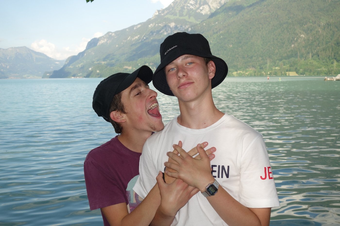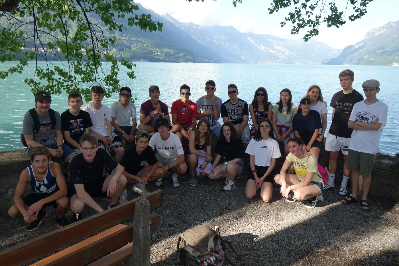 Nach der Rückgabe der Jahresprüfungen am Montagvormittag startete die Abschlussklasse in ihre Projektwoche. Interlaken - zwischen den Seen - war das Reiseziel. Nur wenige Meter neben dem Bahnhof quartierte sich die Klasse von Herrn Liniger in eine schmucke Jugendherberge ein. Nach einem Rundgang im überschaubaren Städtchen zog die Einkaufstruppe los und besorgte das Abendessen für die hungrigen Mäuler. Am Brienzersee gönnten sie sich Bratwürste mit Brot und liessen den Abend ausklingen. In einigen Zimmern waren das Redebedürfis und der Gang zur Toilette etwas gar ausgeprägt...