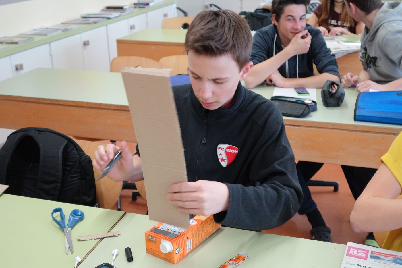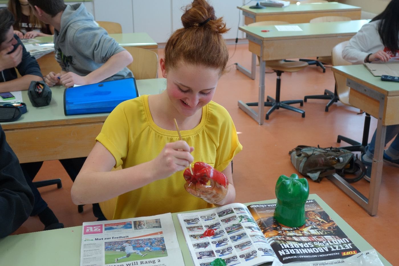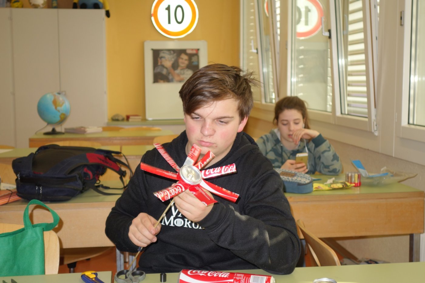 Die Ausgangslage präsentierte sich wie folgt: Aus alten oder unnützen Gegenständen soll ein brauchbares Produkt erschaffen werden, dass sowohl funktional als auch ästhetisch ansprechend ist. Nach einer Ideenfindung und der Planung ging es an die Umsetzung: PET-Flaschen, Aludosen, Holz und Karton wurden als Materialien ausgewählt und auch eine Jeans vom Klassenlehrer wurde in Stücke geschnitten. In der folgenden Bildstrecke sehen sie die Kids bei der Arbeit. Die fertigen Kunstobjekte gibt es dann zu einem späteren Zeitpunkt ebenfalls hier zu sehen.