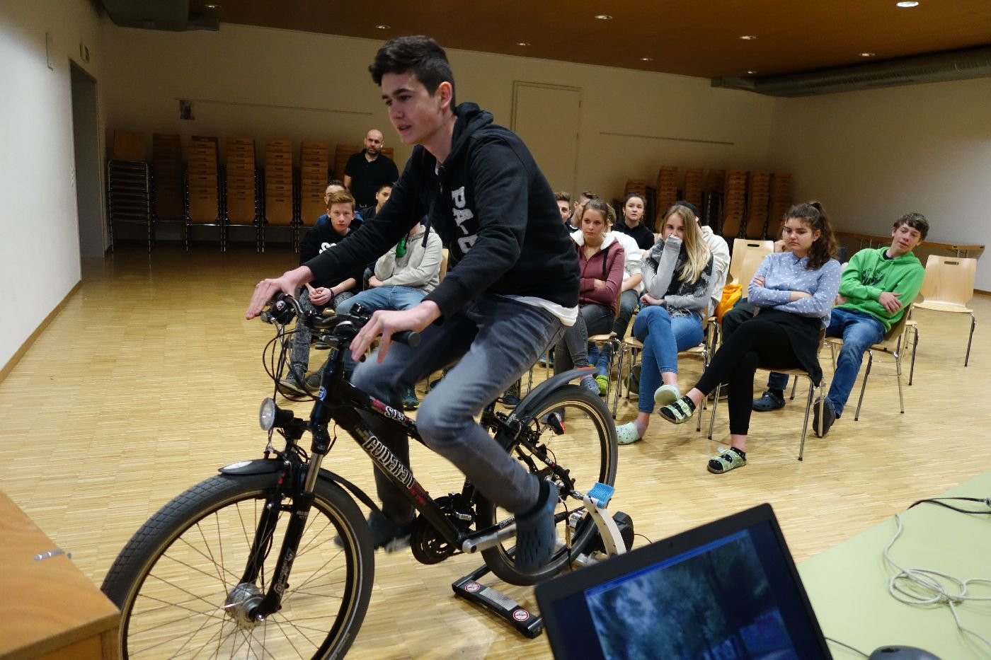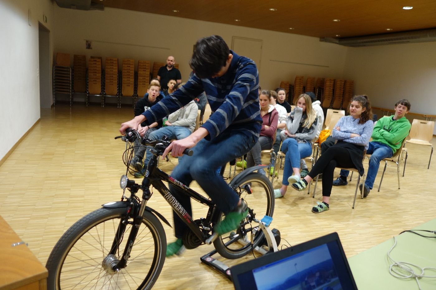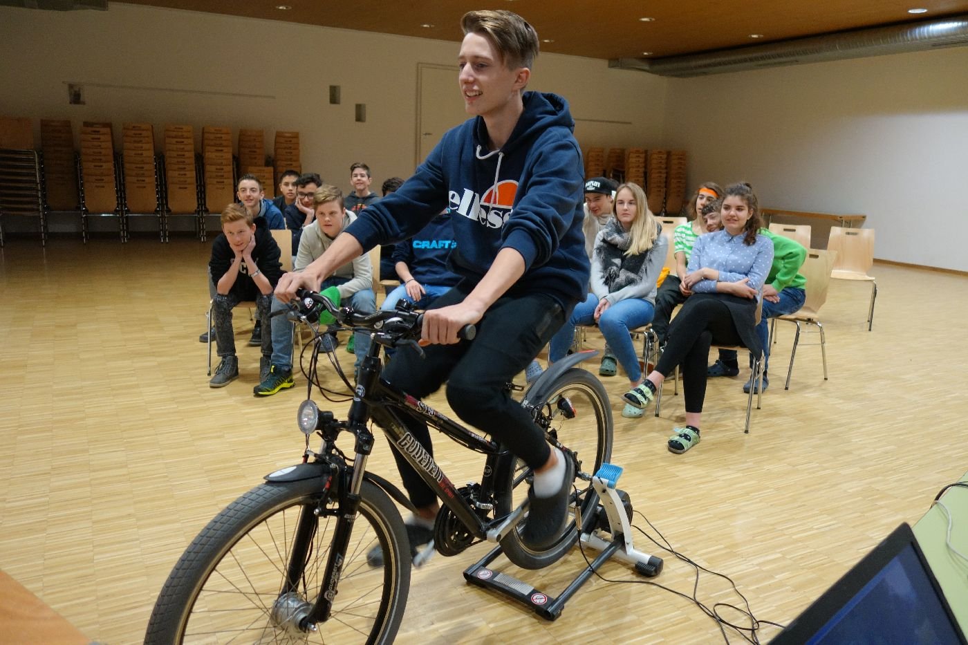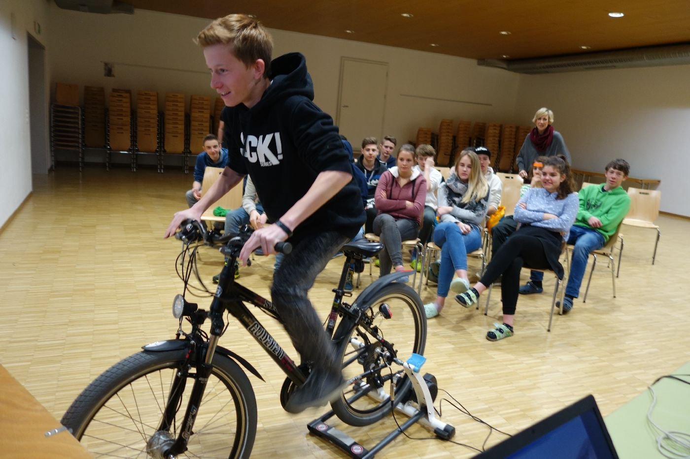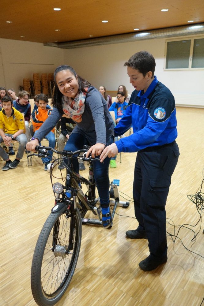Gestern Mittwoch hatten wir Besuch von der Polizei. Auch wenn die Jugendlichen coole Sprüche über die "Bullen" klopfen, macht die Uniform doch noch Eindruck. Gespannt und aufmerksam hörten die Lernenden den Polizisten zu, welche über Anhaltestrecke und deren Aufteilung in Reaktions- und Bremsweg informierten. Konkret konnten die Lernenden ihre Reaktionsfähigkeit auf einem Velo testen. Zum Glück handelte es sich dabei um eine Demo, ansonsten hätten nicht alle diesen Morgen heil überstanden.