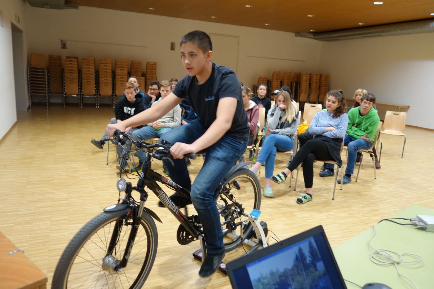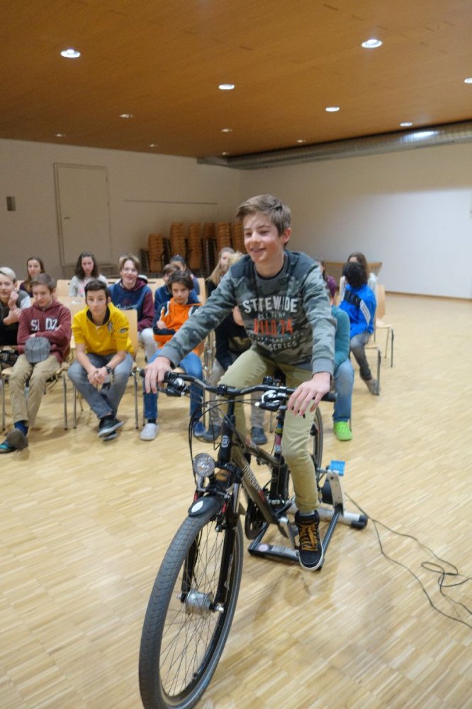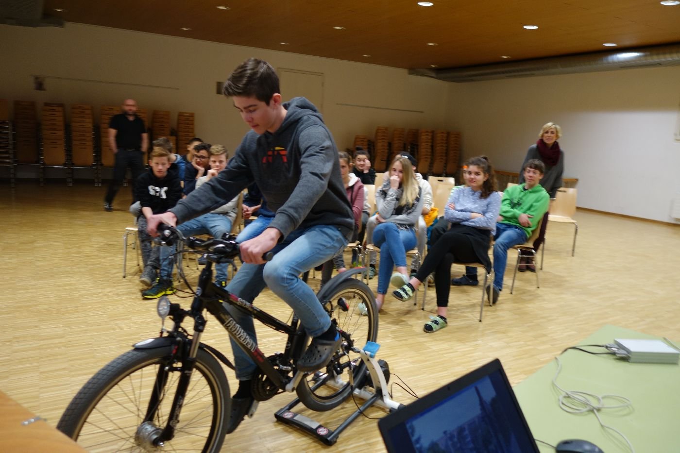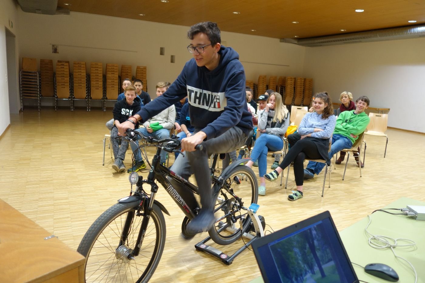 Gestern Mittwoch hatten wir Besuch von der Polizei. Auch wenn die Jugendlichen coole Sprüche über die "Bullen" klopfen, macht die Uniform doch noch Eindruck. Gespannt und aufmerksam hörten die Lernenden den Polizisten zu, welche über Anhaltestrecke und deren Aufteilung in Reaktions- und Bremsweg informierten. Konkret konnten die Lernenden ihre Reaktionsfähigkeit auf einem Velo testen. Zum Glück handelte es sich dabei um eine Demo, ansonsten hätten nicht alle diesen Morgen heil überstanden.