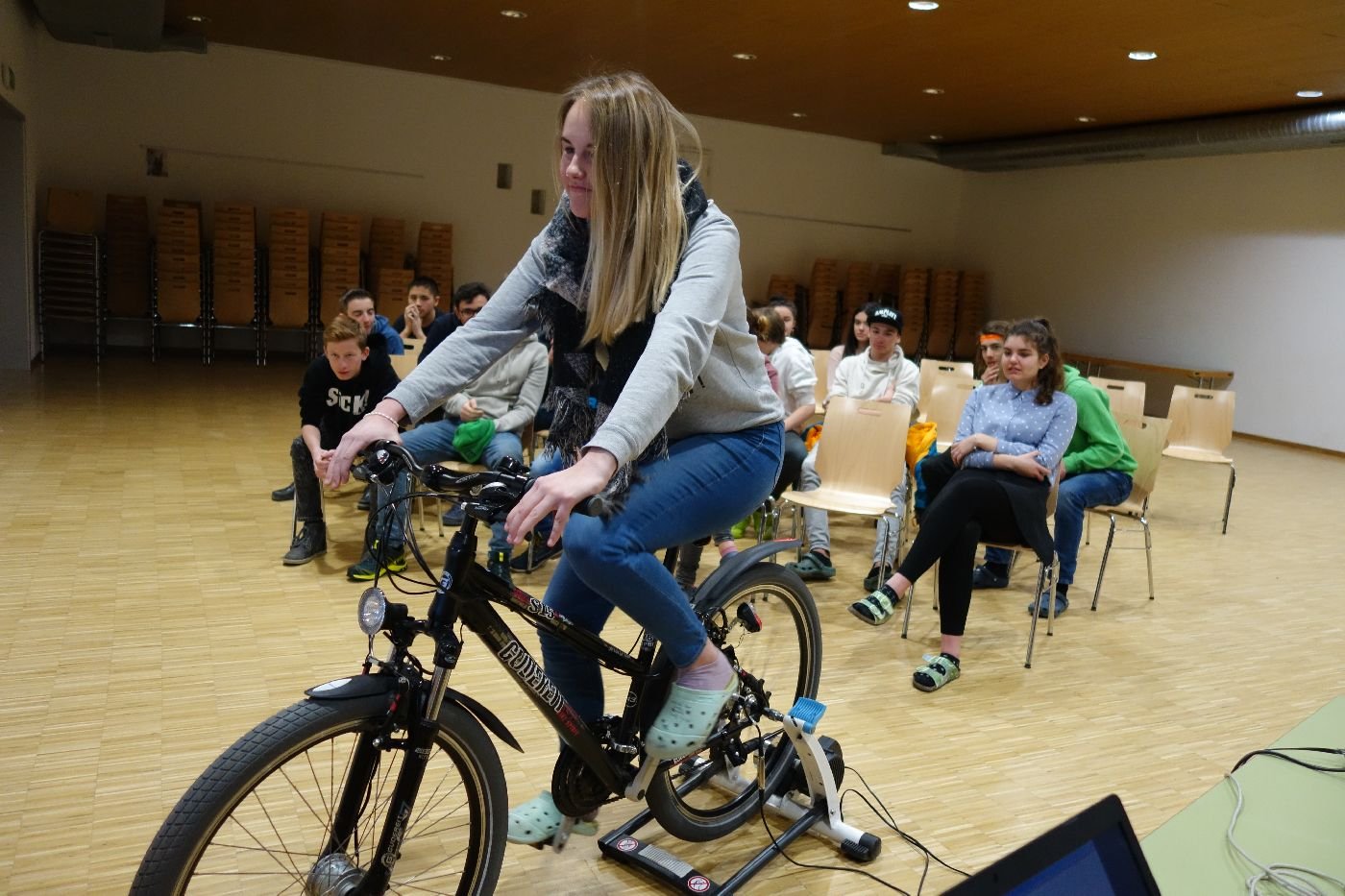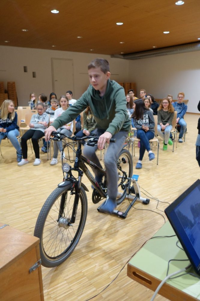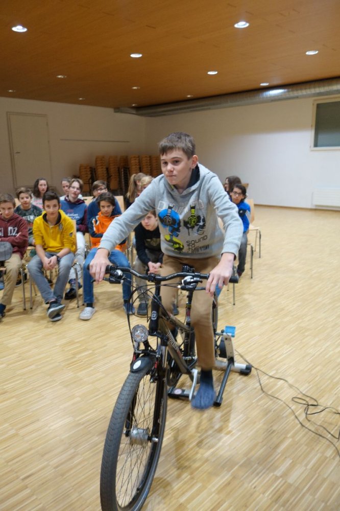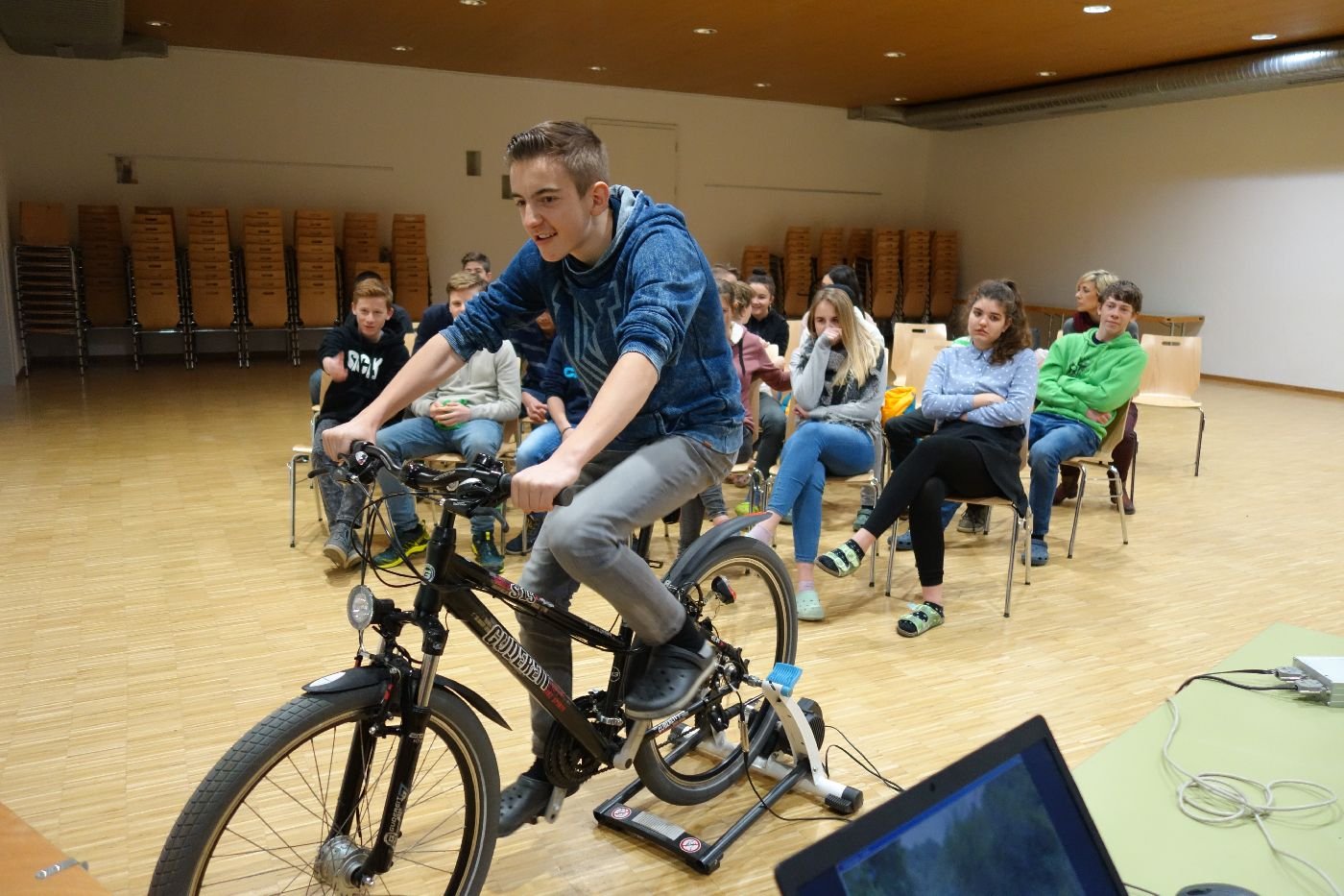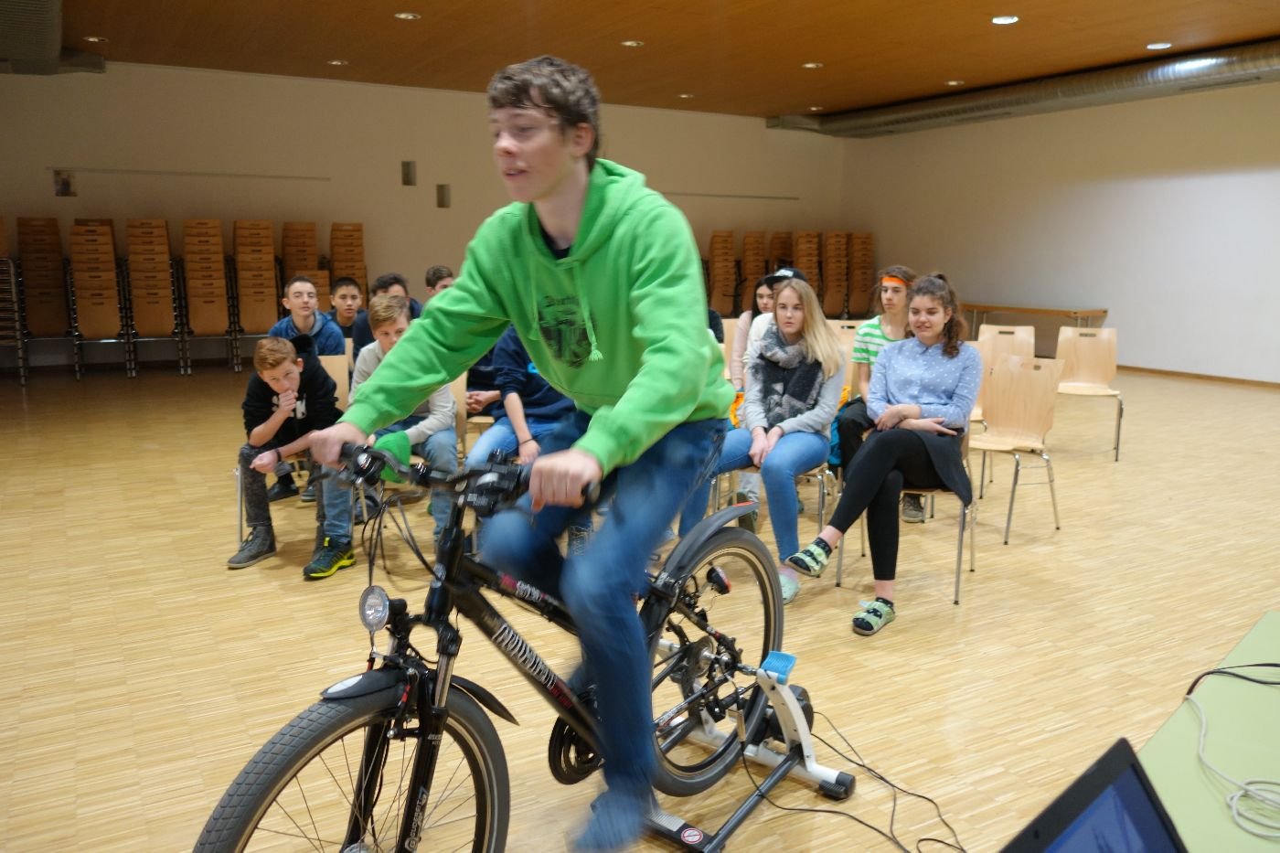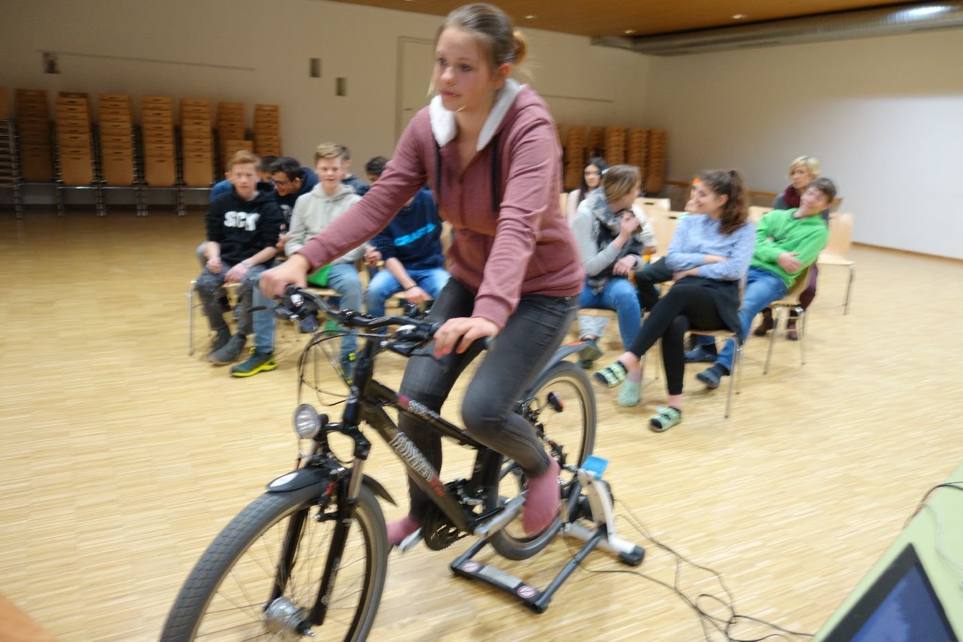 Gestern Mittwoch hatten wir Besuch von der Polizei. Auch wenn die Jugendlichen coole Sprüche über die "Bullen" klopfen, macht die Uniform doch noch Eindruck. Gespannt und aufmerksam hörten die Lernenden den Polizisten zu, welche über Anhaltestrecke und deren Aufteilung in Reaktions- und Bremsweg informierten. Konkret konnten die Lernenden ihre Reaktionsfähigkeit auf einem Velo testen. Zum Glück handelte es sich dabei um eine Demo, ansonsten hätten nicht alle diesen Morgen heil überstanden.
