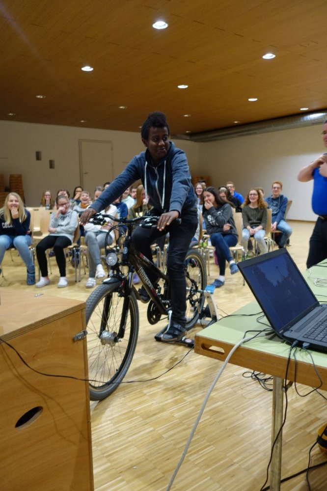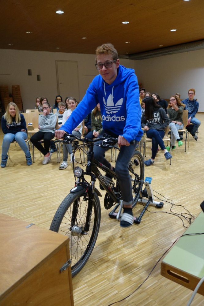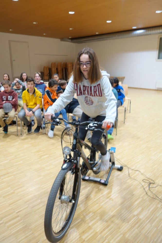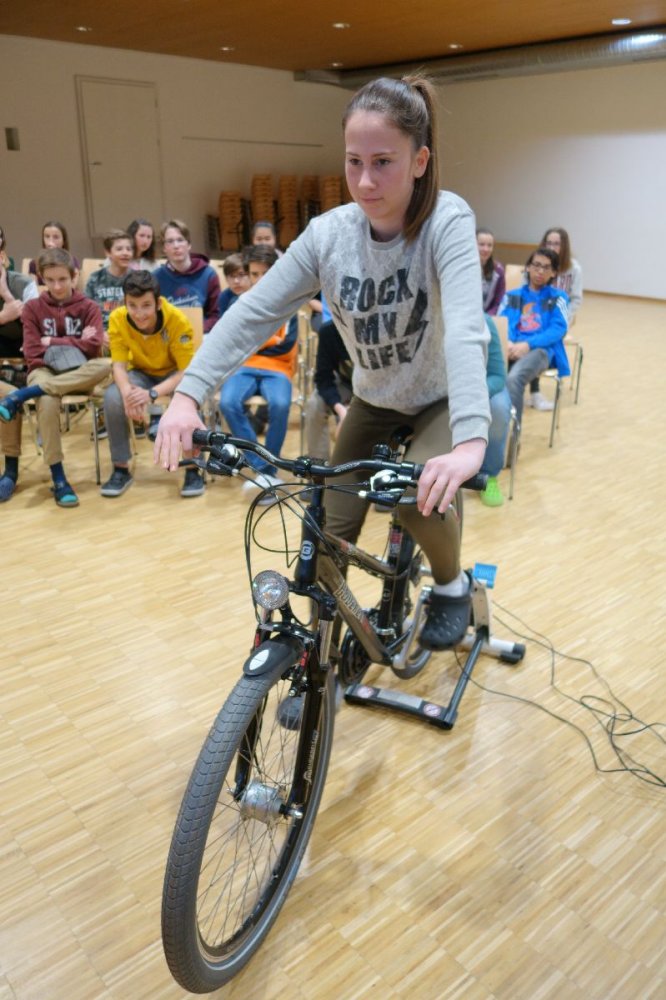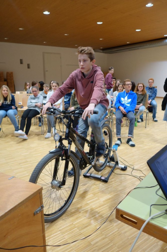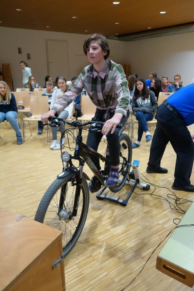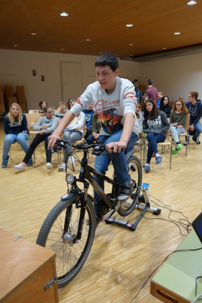 Gestern Mittwoch hatten wir Besuch von der Polizei. Auch wenn die Jugendlichen coole Sprüche über die "Bullen" klopfen, macht die Uniform doch noch Eindruck. Gespannt und aufmerksam hörten die Lernenden den Polizisten zu, welche über Anhaltestrecke und deren Aufteilung in Reaktions- und Bremsweg informierten. Konkret konnten die Lernenden ihre Reaktionsfähigkeit auf einem Velo testen. Zum Glück handelte es sich dabei um eine Demo, ansonsten hätten nicht alle diesen Morgen heil überstanden.