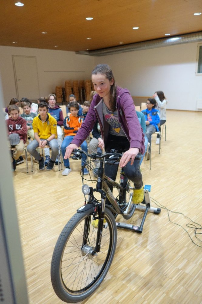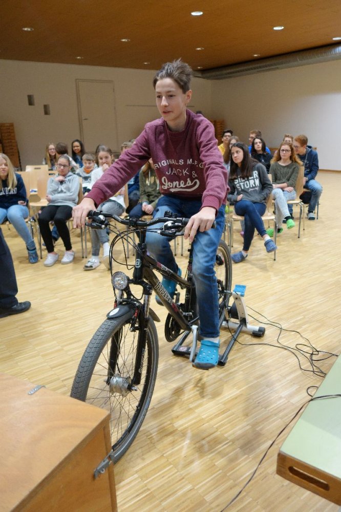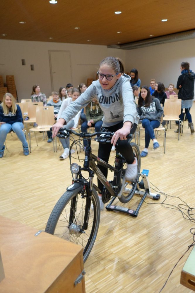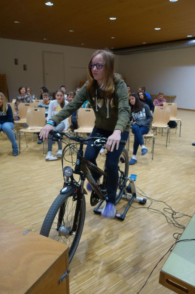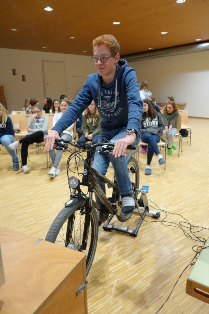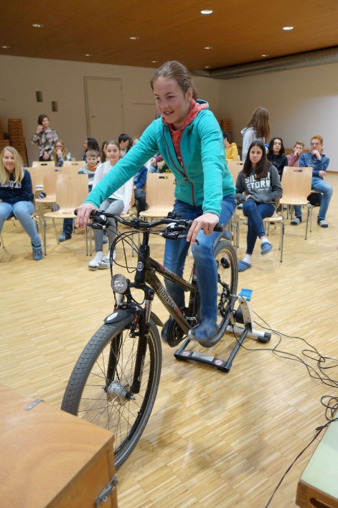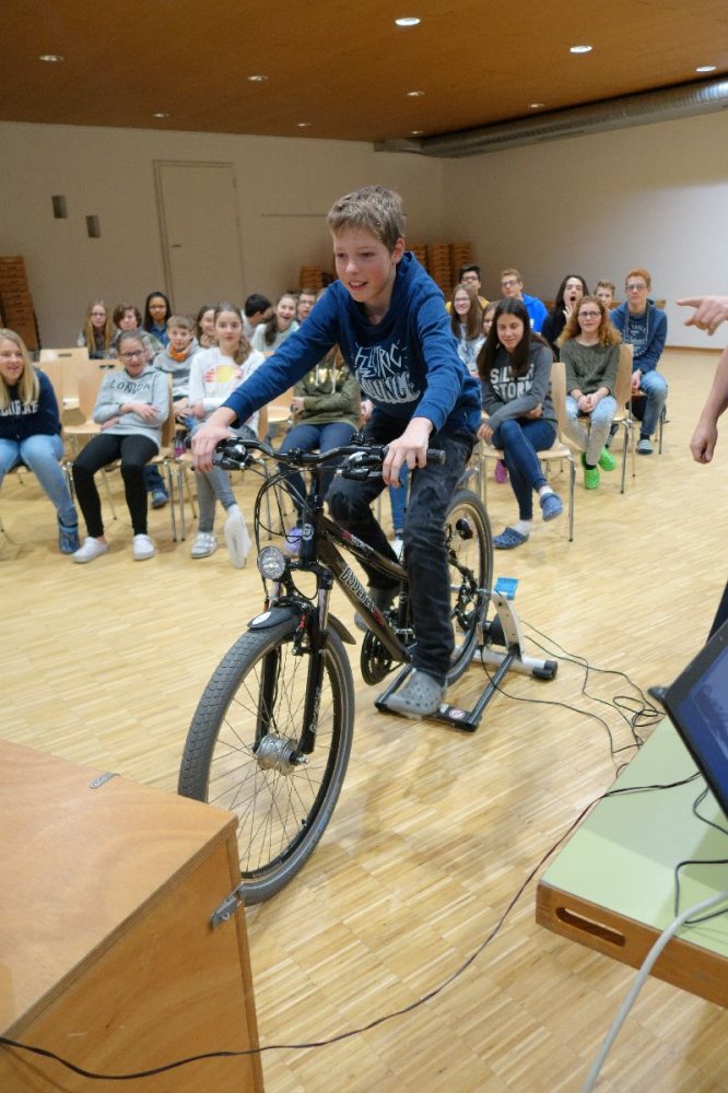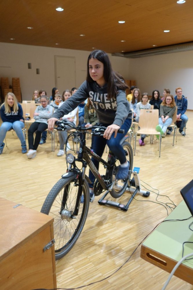 Gestern Mittwoch hatten wir Besuch von der Polizei. Auch wenn die Jugendlichen coole Sprüche über die "Bullen" klopfen, macht die Uniform doch noch Eindruck. Gespannt und aufmerksam hörten die Lernenden den Polizisten zu, welche über Anhaltestrecke und deren Aufteilung in Reaktions- und Bremsweg informierten. Konkret konnten die Lernenden ihre Reaktionsfähigkeit auf einem Velo testen. Zum Glück handelte es sich dabei um eine Demo, ansonsten hätten nicht alle diesen Morgen heil überstanden.