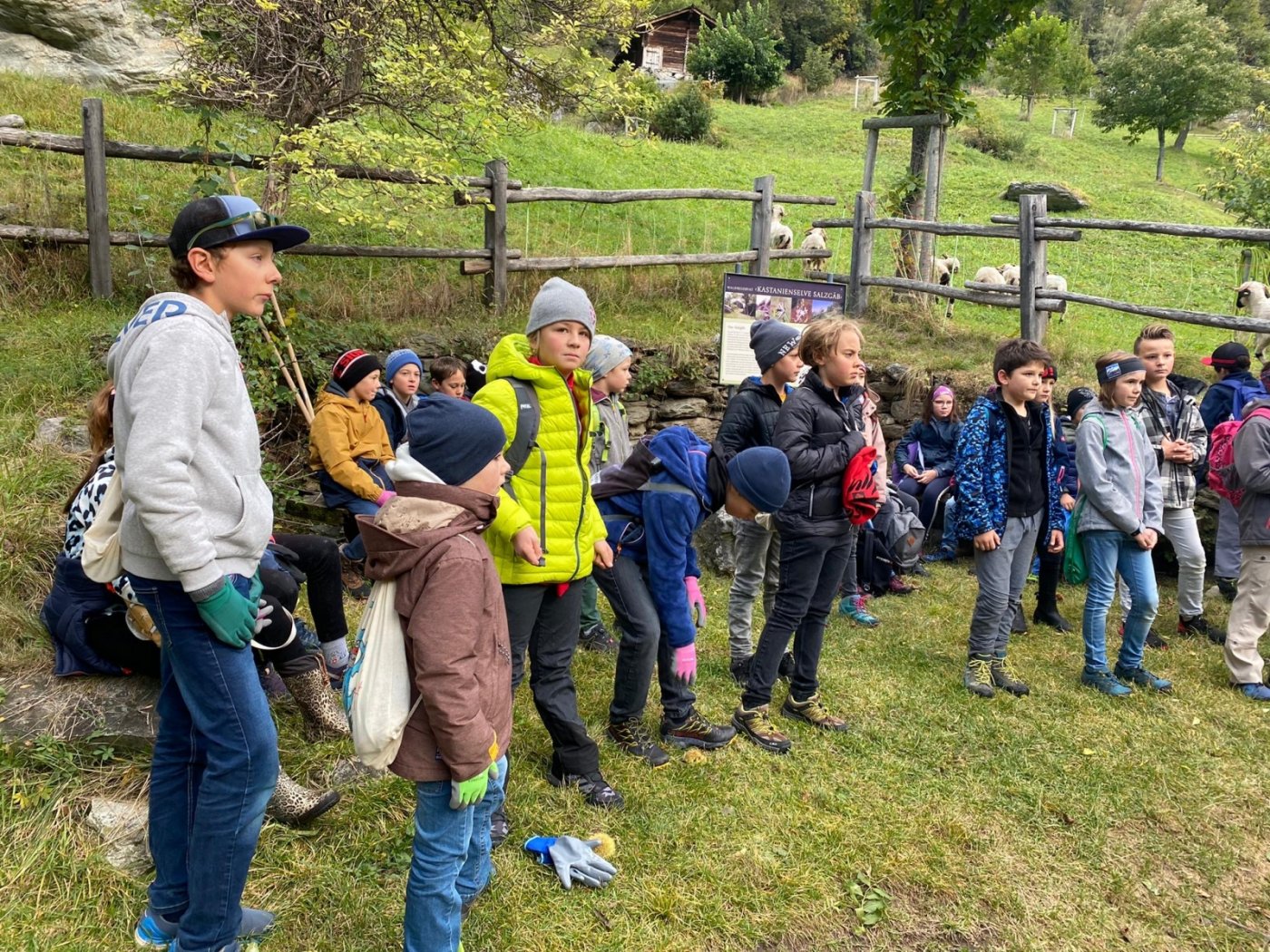 Unser Ausflug führte uns am Donnerstagmorgen nach Mörel. Dort trafen wir Alexandra, welche uns begleitete. Gemeinsam spazierten wir ins ,,Salzgäb‘‘ , dort angekommen, erzählte uns Alban einige interessante Geschichten von früher. Danach führte uns Alexandra zu der Kastanienplantage. Wir wurden in kleine Grüppchen aufgeteilt und sogleich begann die Ernte. Nach langem Arbeiten liefen wir zurück zu dem Kastanienhäuschen. Dort erklärte uns Alexandra wie die Kastanien verarbeitet werden können.