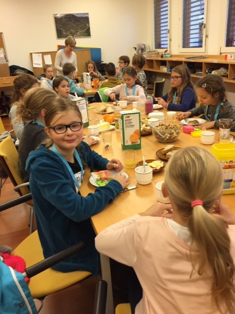 Die 3./4. Klasse stimmte sich bereits im Verlaufe des Tages mit einem "Mut-Legekreis