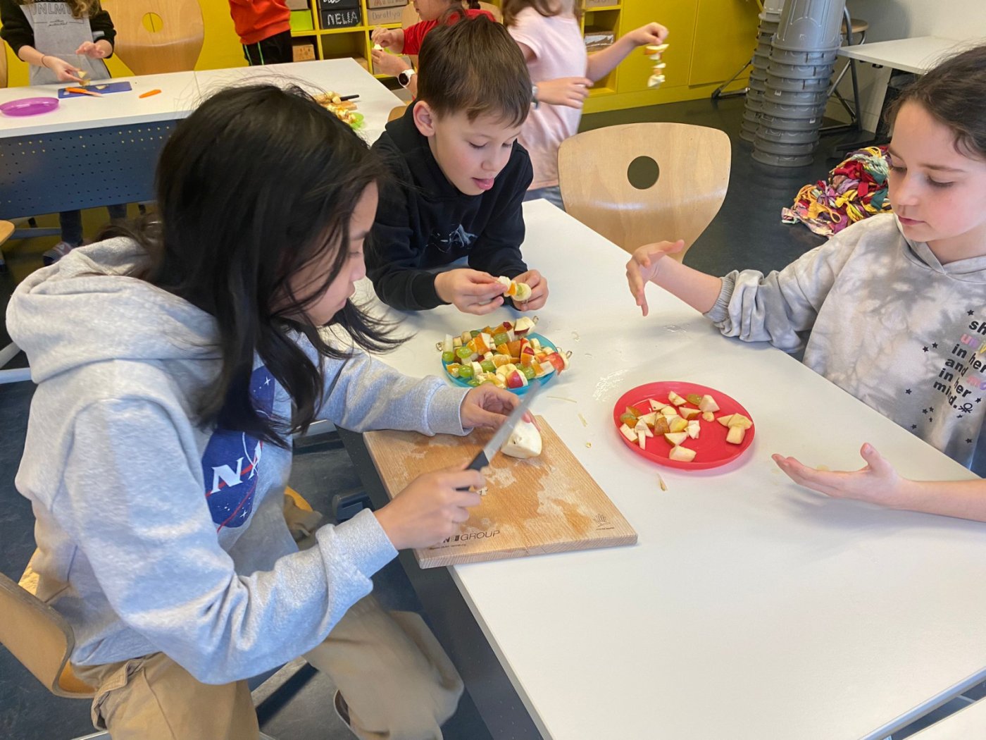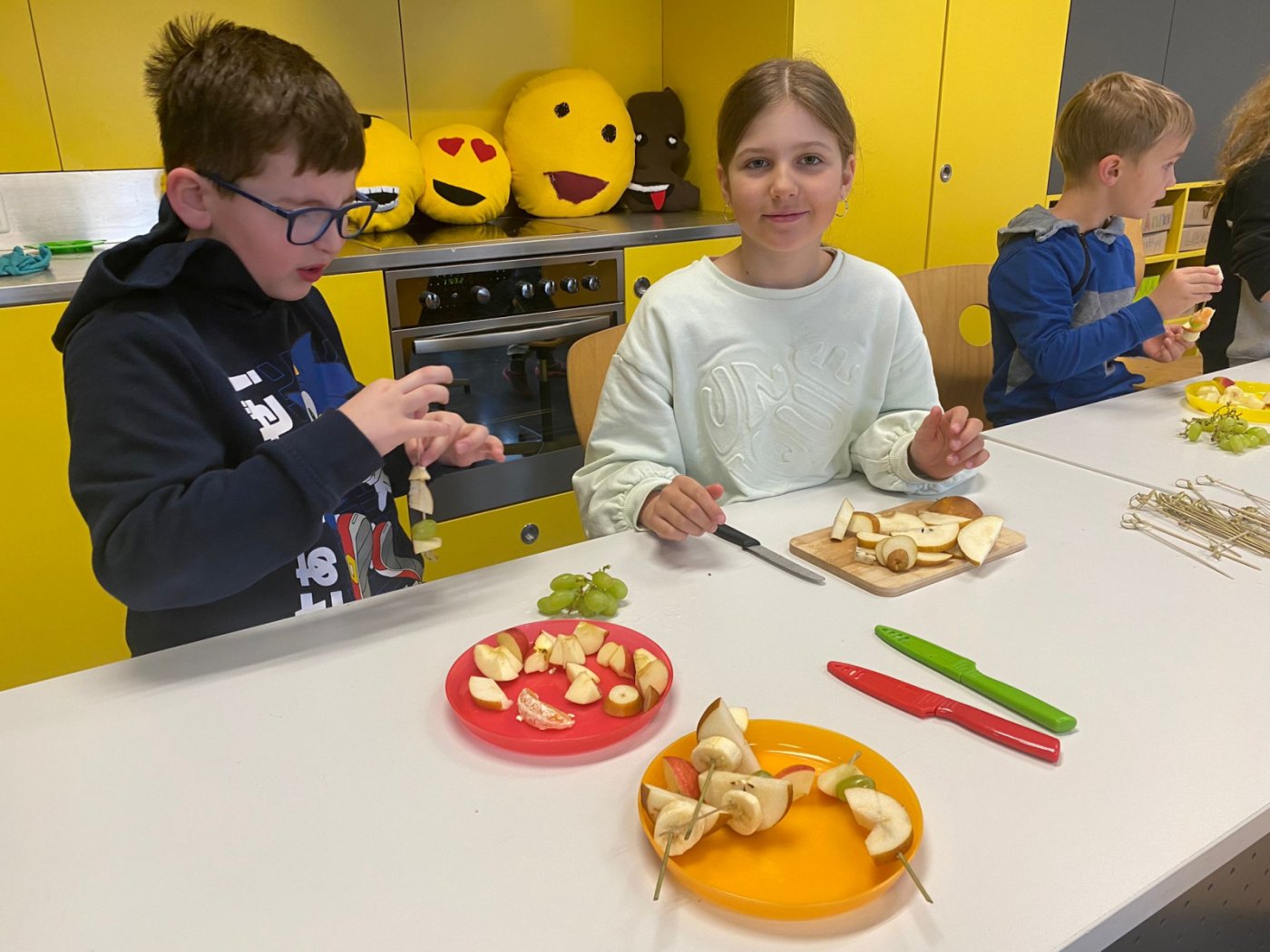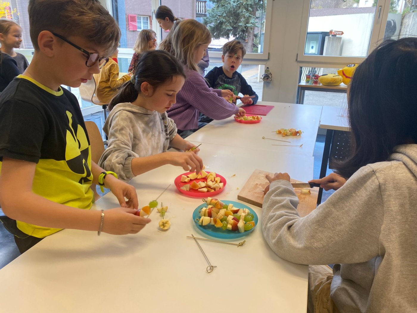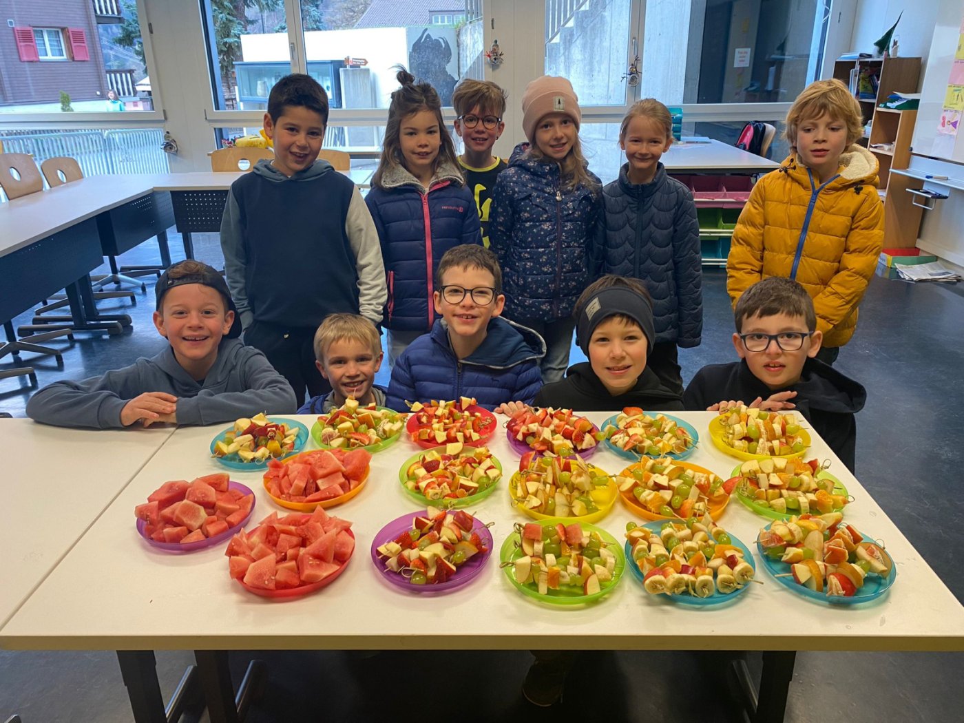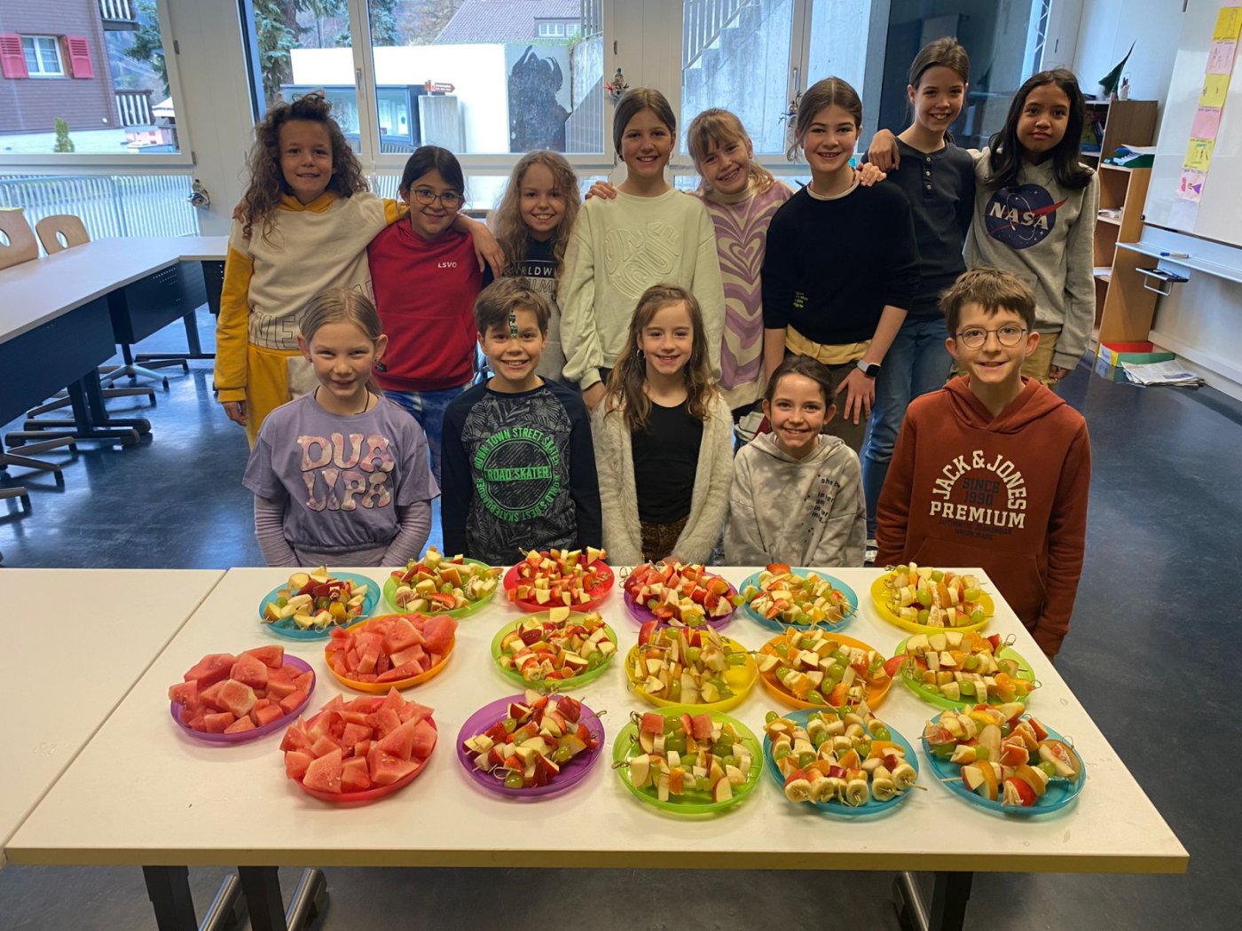 Am Mittwochmorgen feierten die Kinder der Primarschule Bitsch (3H-8H) gemeinsam Ostern. Miteinander bereiteten die Schülerinnen und Schüler ein leckeres Osterfrühstück vor. Jede Klasse übernahm eine Aufgabe. Einige deckten die Tische, andere gingen in den Dorfladen um einzukaufen und wiederum manche Klassen bereiteten köstliche Fruchtspiesse vor. Danach begaben sich alle Klassen in den Gemeindesaal um zusammen zu frühstücken. Es wurde Nutellabrot verspeist, Cornflakes verzehrt und Joghurt gelöffelt. Es war ein schöner Morgen und am Schluss waren die Kinder glücklich und die Bäuche voll.