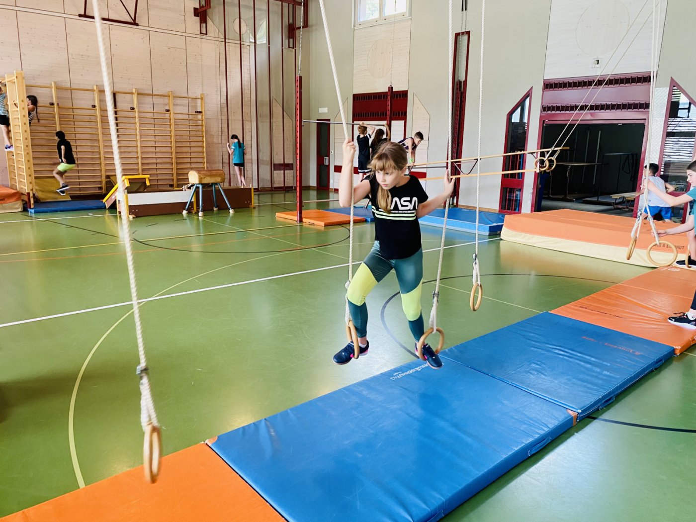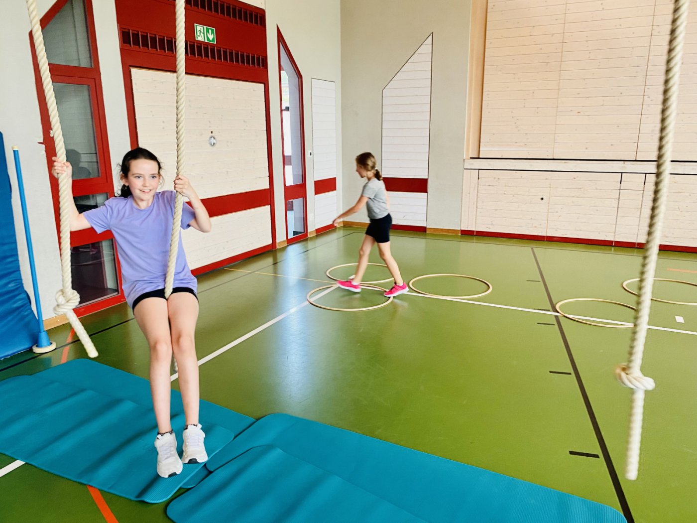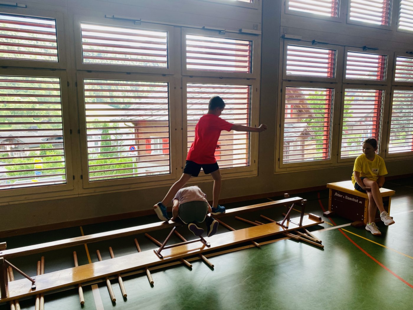 In den vergangenen Schulwochen haben wir etappenweise unseren Ninja Warrior Parcours aufgebaut. Während den Turnstunden konnten wir hüpfen und springen, schwingen und balancieren, klettern und springen. Am Anfang noch etwas zurückhaltend - trauten sich die Kinder doch immer mehr zu und überwanden die einzelnen Stationen sportlich und mit viel Kreativität.