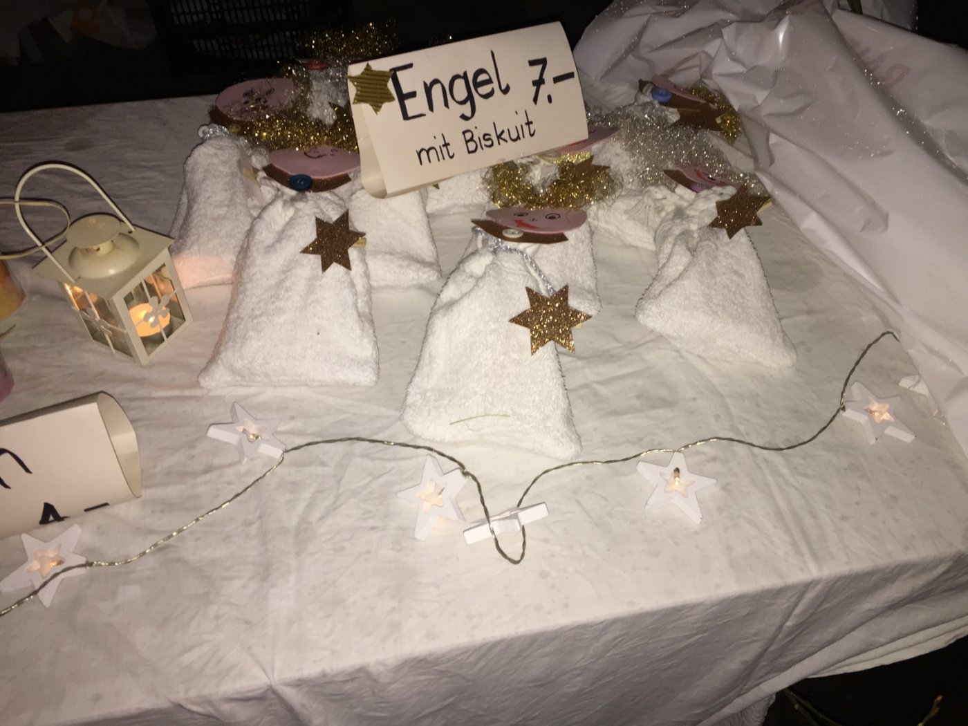 Am 16. Dezember abends um 18.00 Uhr war es dann so weit. Eltern, Geschwister, Verwandte und Bekannte erschienen zahlreich, um unseren Trompetenklängen, Flötenmelodien und Weihnachtsliedern zu lauschen. Dann ging‘s los, an mehreren Ständen verkauften wir unsere gebastelten Adventsdekorationen und Weihnachtsgeschenke. Wir haben stolze 3000 Franken eingenommen und der Aktion „Jeder Rappen zählt“ gespendet.