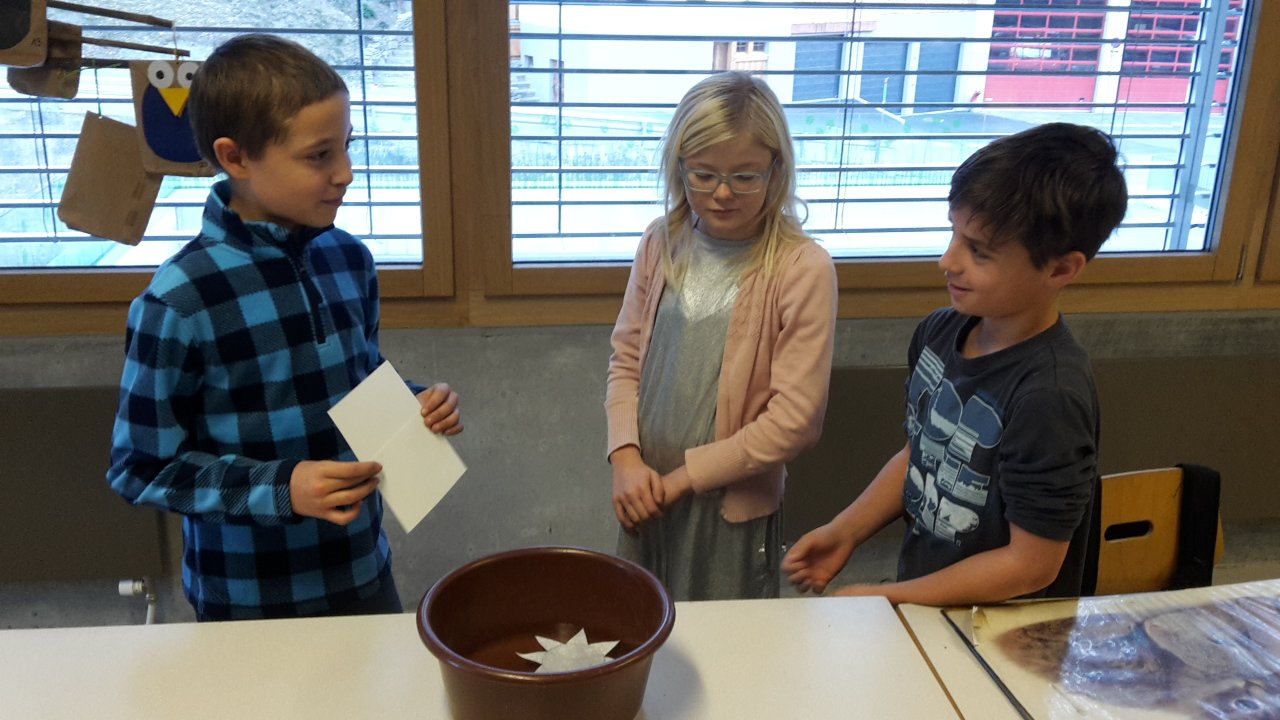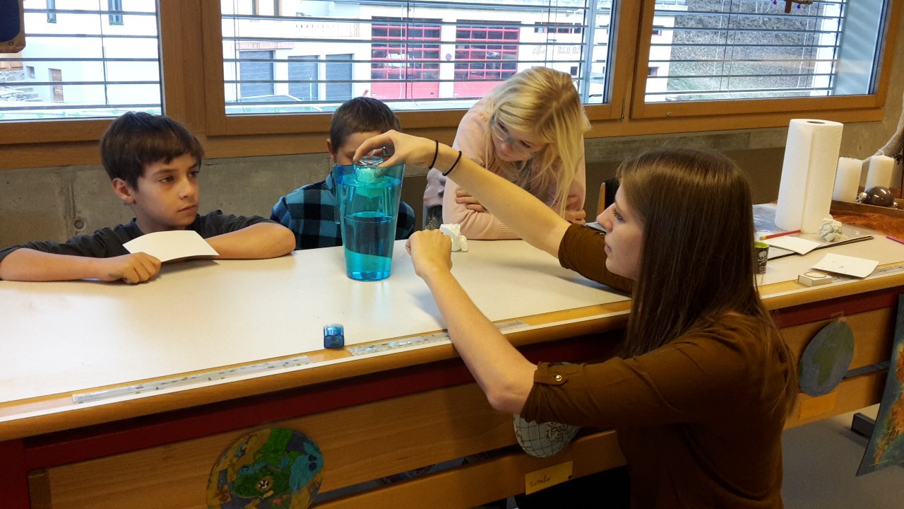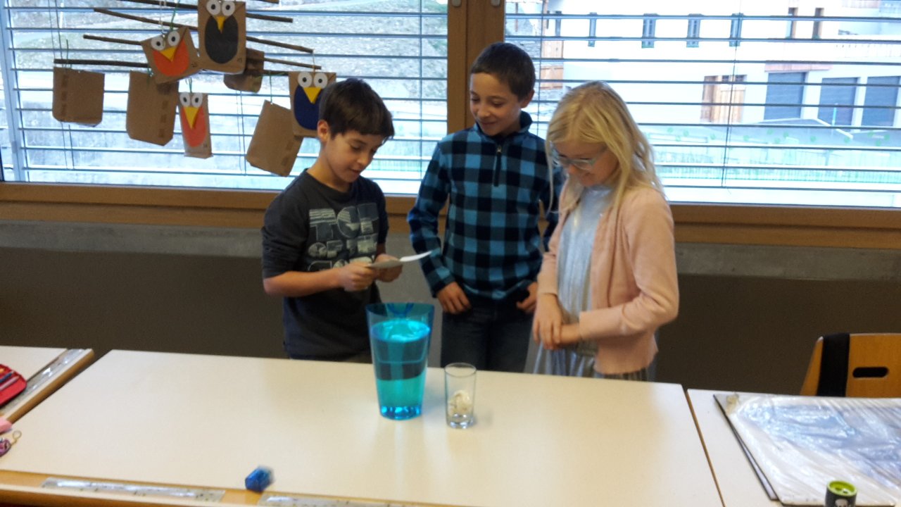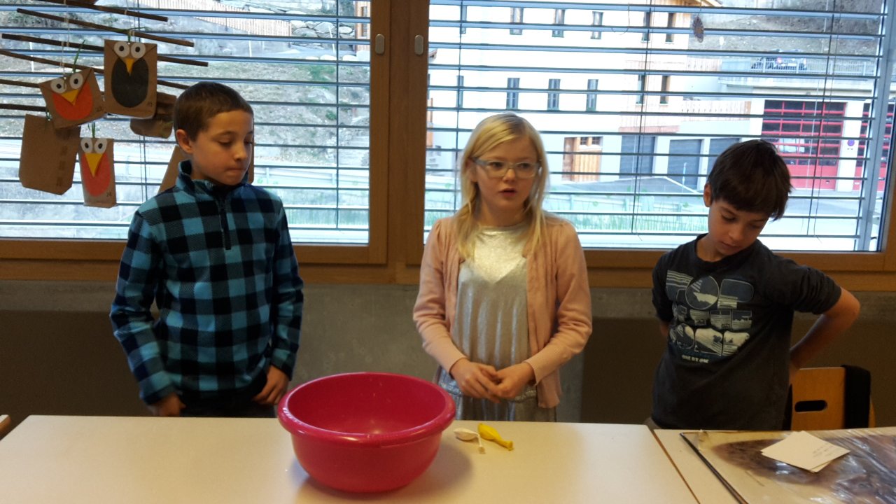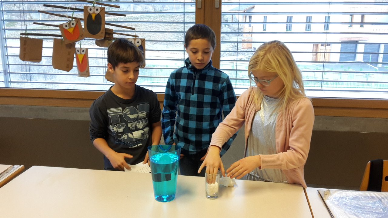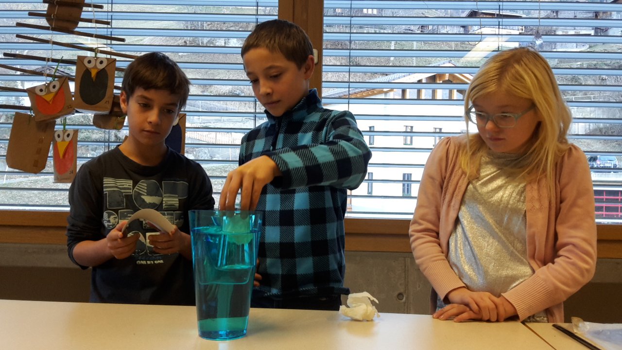 Im Französischunterricht bereitete jeder Schüler der 7H (Grengiols) ein Experiment vor. Diese Experimente wurden anschliessend mit den Klassenkameraden durchgeführt. Hierbei gab der verantwortliche Schüler die Anweisungen und Erklärungen den Klassenkameraden auf Französisch. Folgende Experimente wurden durchgeführt:
