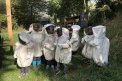Am Morgen erzählte Peter Clausen viel Wissenswertes über die Bienen. Besonders spannend war es für die Kinder in einem Imkerschleier und mit Handschuhen lebende Bienen aus der Nähe zu betrachten.