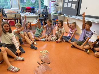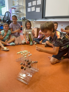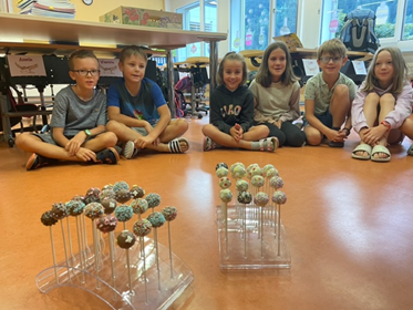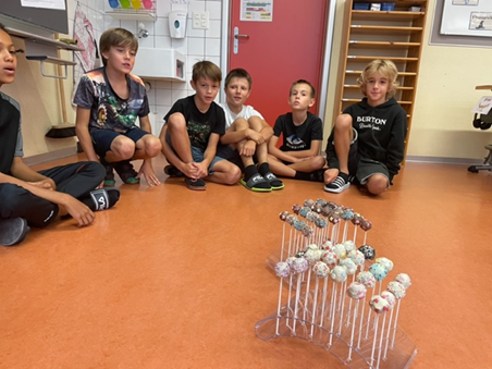 Lenia Kummer ist die erste Schülerin der 5H/6H die in diesem Schuljahr ihren Geburtstag feiern konnte. Anfang September wurde sie 8 Jahre alt. Daher überraschte uns ihre Mama mit einer Süssigkeit - eine Geburtstagstorte einmal ganz anders. Nach dem Geburtstagslied verteilte Lenia die schön verzierten Schokokugeln. Die Kinder waren ganz begeistert.