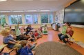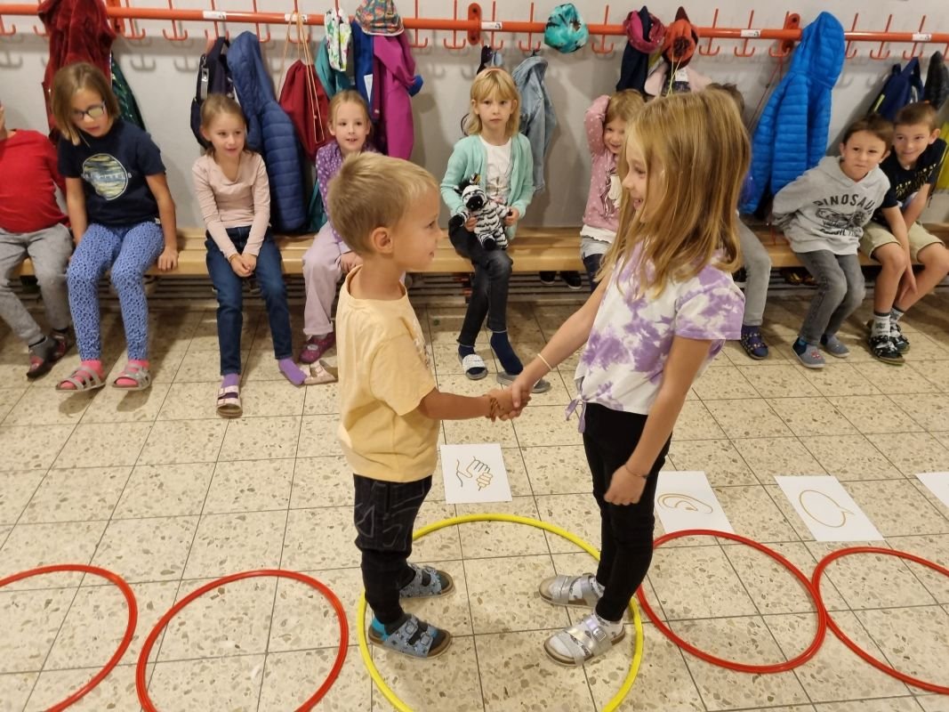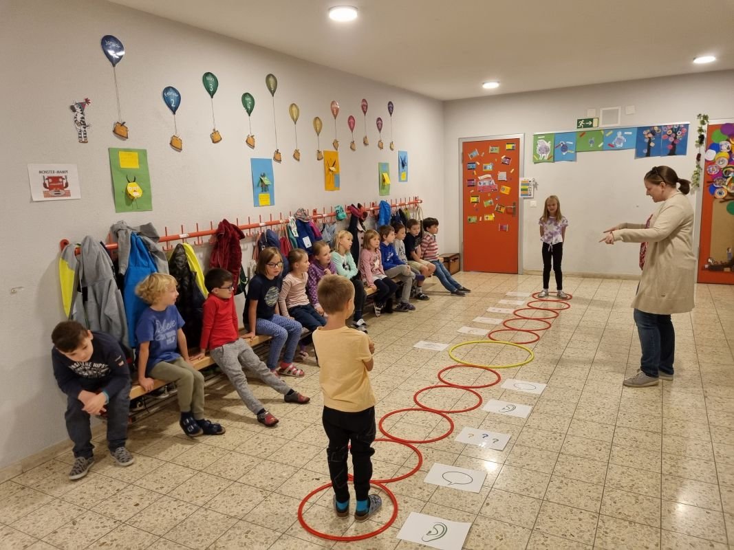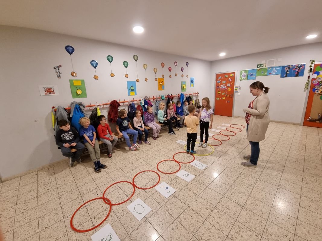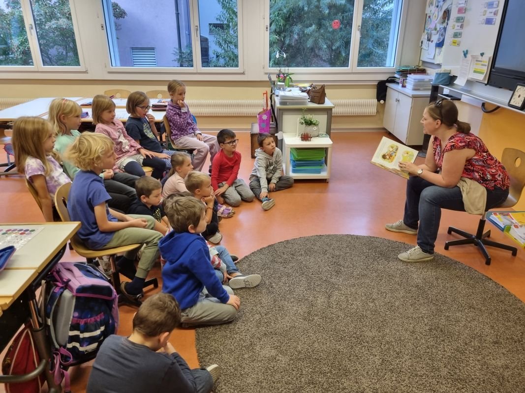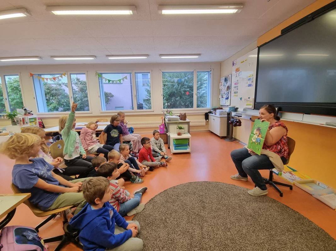 Einmal kam auch Kerstin Volken, die Mediatorin unserer Schule, bei uns vorbei und hat uns eine spannende Geschichte vorgelesen. Es ging um eine Gans und eine Ziege, welche Streit hatten. Am Ende der Geschichte hatten sie wieder Frieden. Kerstin hat auch einen schönen Parcours vorbeigebracht (Konfliktlösungsstreifen). Noée und Yano spielten dort die Geschichte nach. Dieser Parcours hilft uns nun bei Streitereien. Wir haben dank Kerstin folgendes gelernt: Man muss einander zuhören. Es ist wichtig, dass man einander in die Augen schaut. Es ist wichtig, dass die Entschuldigung ehrlich gemeint ist.