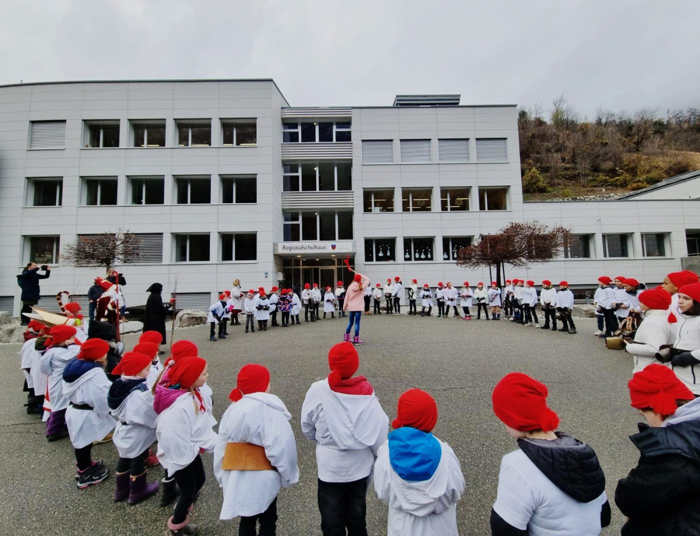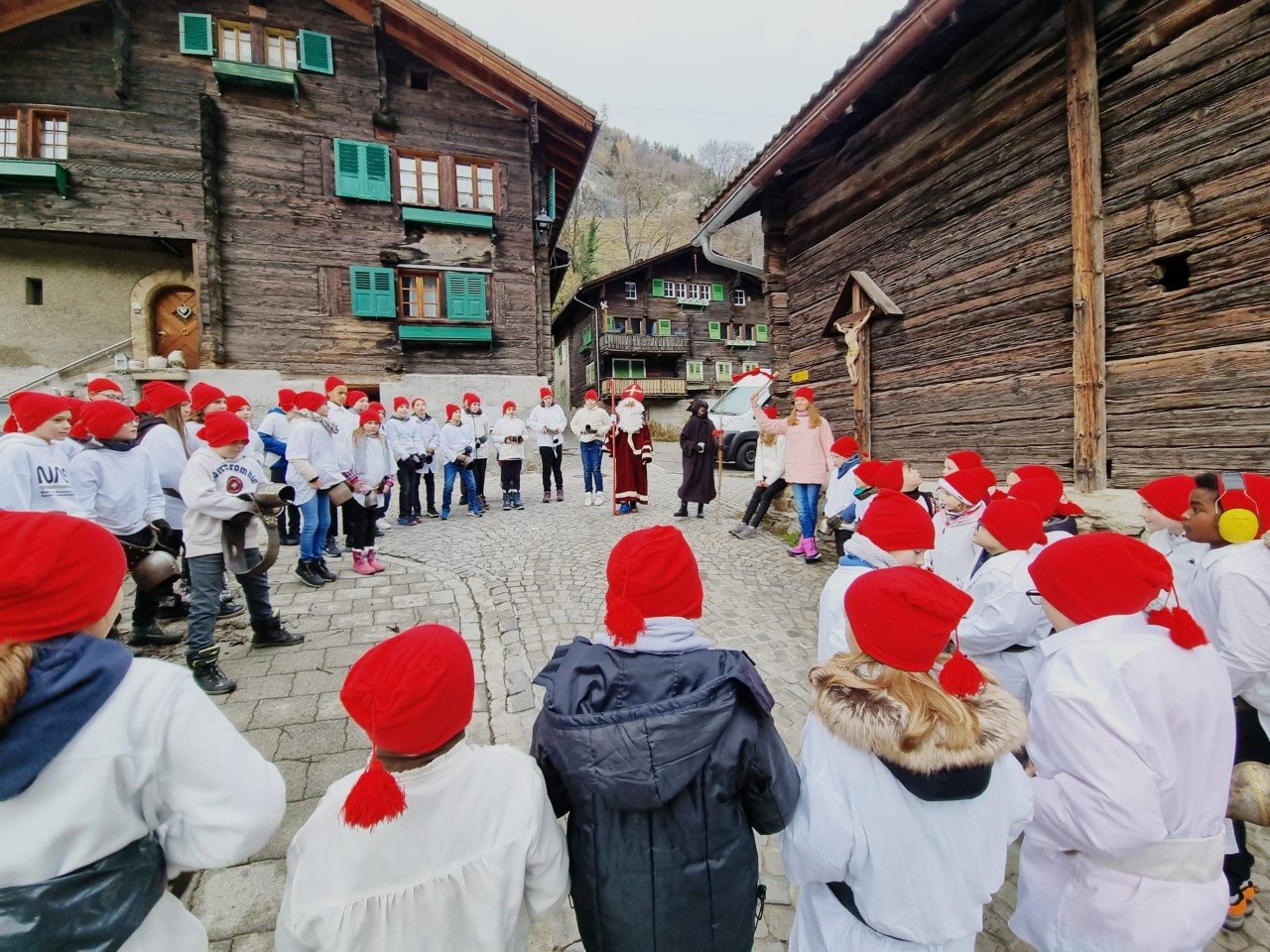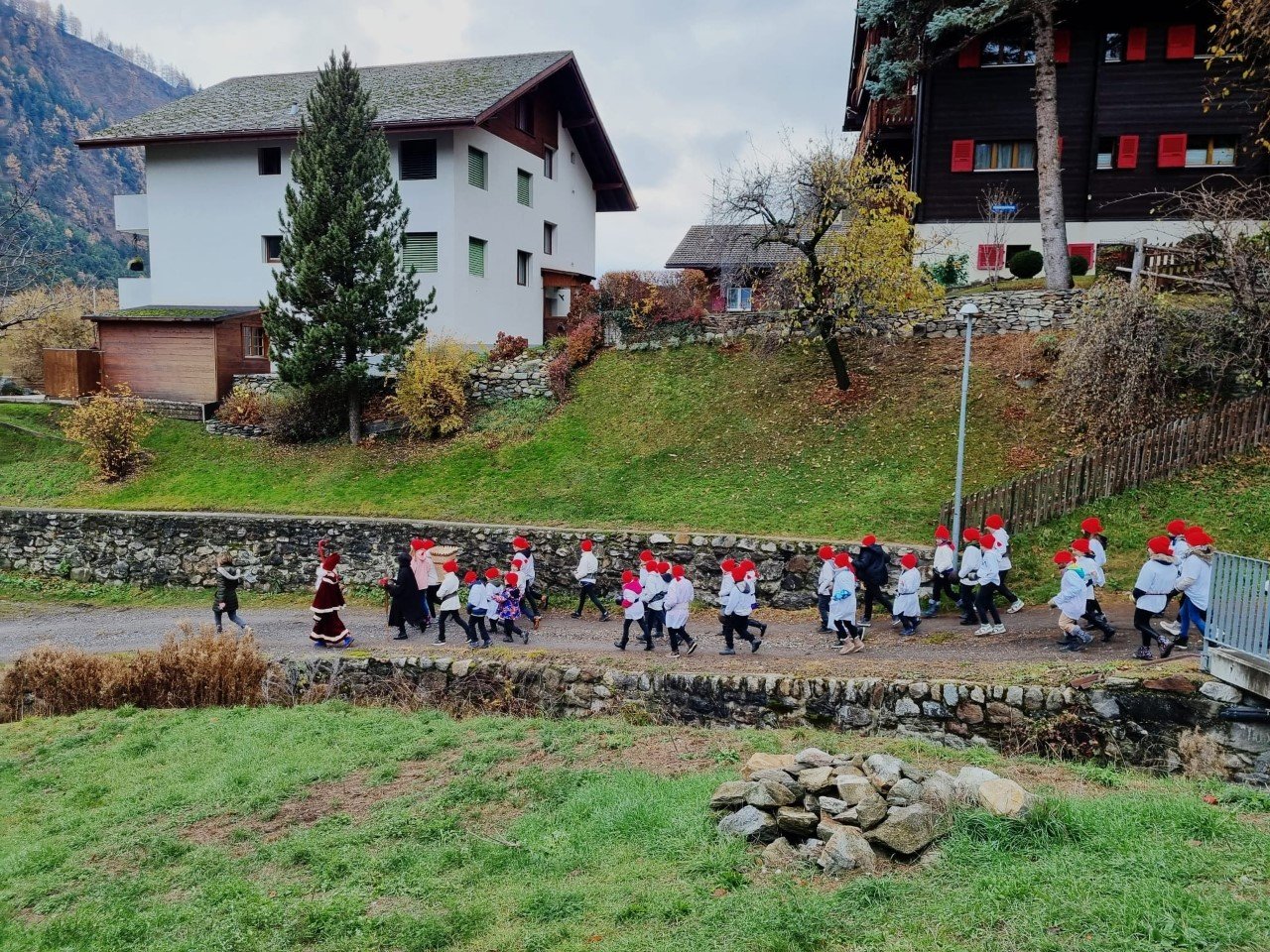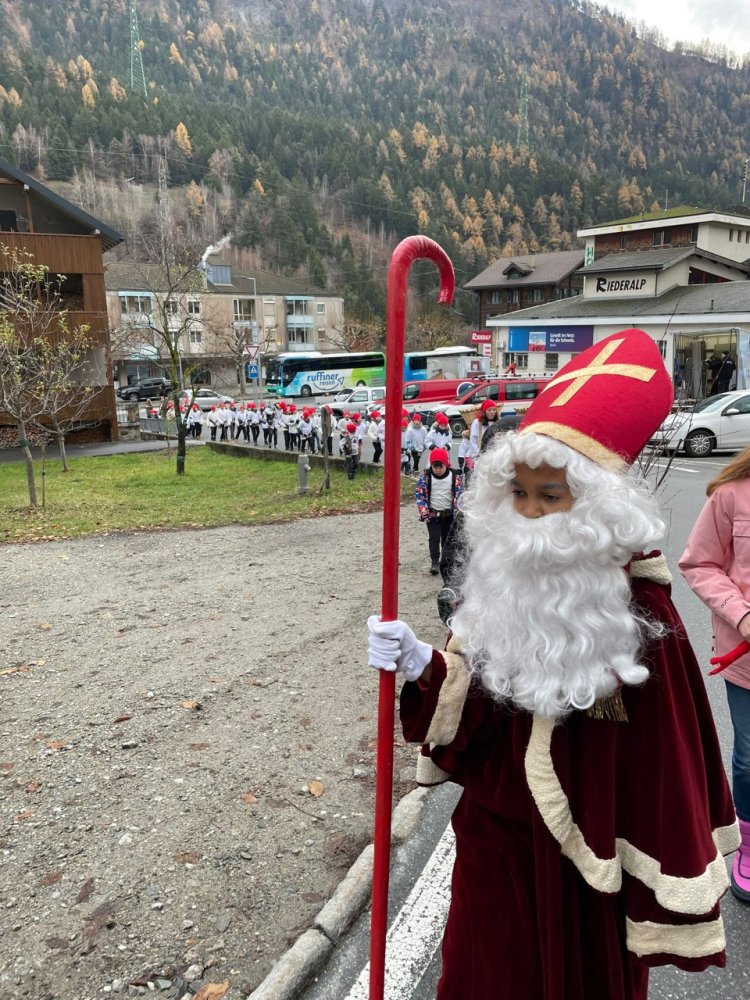 Nach altem Brauch zogen am 5. Dezember die Schülerinnen und Schüler der 1H-8H auf neuen Routen durch die Strassen von Mörel. Nikolaus und Schmutzli begleitetet die beiden Gruppen und die Träger sammelten fleissig die Gaben der Bevölkerung ein. So konnte jedes Kind am Abend ein Säcklein mit Mandarinen, Nüssen und vielen Süssigkeiten heimnehmen und die Klassenkassen erhielten einen tollen Zustupf.