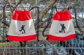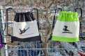 Danach haben wir Piktogramme zu unserer Lieblingssportart im Internet gesucht und eines für unsere Rucksackmotiv ausgewählt. Daraus haben wir eine Schablone aus Klebefolie hergestellt und mit schwarzer Farbe das Motiv auf den Stoff gestupft. Eine Linie im Stielstich haben wir zur Dekoration von Hand aufgenäht.
